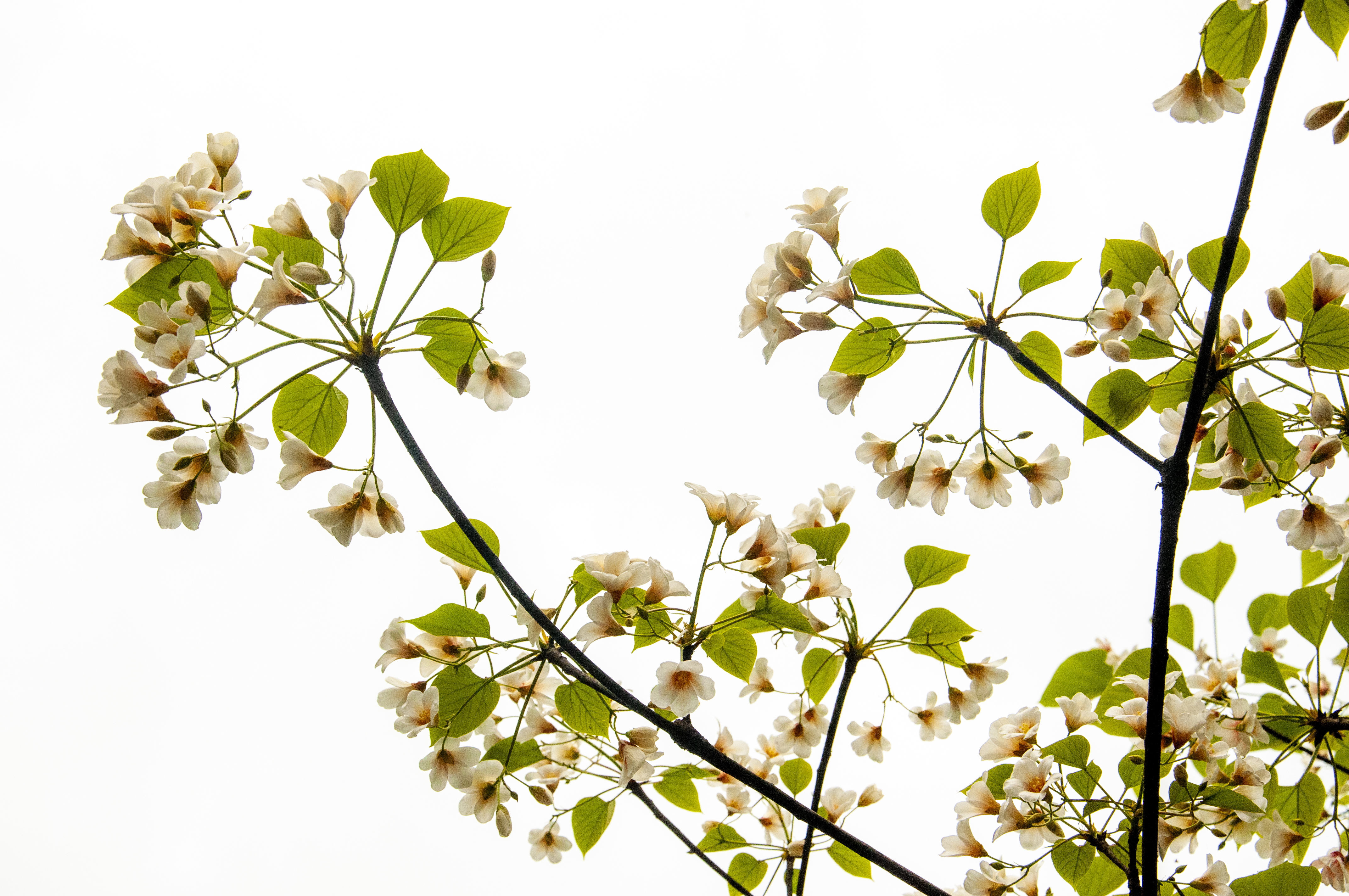 其中一位姐姐尤其爱花且充满好奇,能在登高远眺时大喊:“我要辞职”的心态是支撑这股好奇绝佳的动力。得她的福,每见一种花都要拍照百科,我们也跟着增长了不少知识。一路最多垂柳而下的木香花,多成花墙之势;小清明蒿密密匝匝铺成花田;鸢尾则常常恭候两旁;谢落的油桐花殒身入泥,成全一段破碎的花径。我惊头一次见黄、粉、白三种颜色的油菜花,她则喜寻见一味名字好听的药材,叫“天南星”。