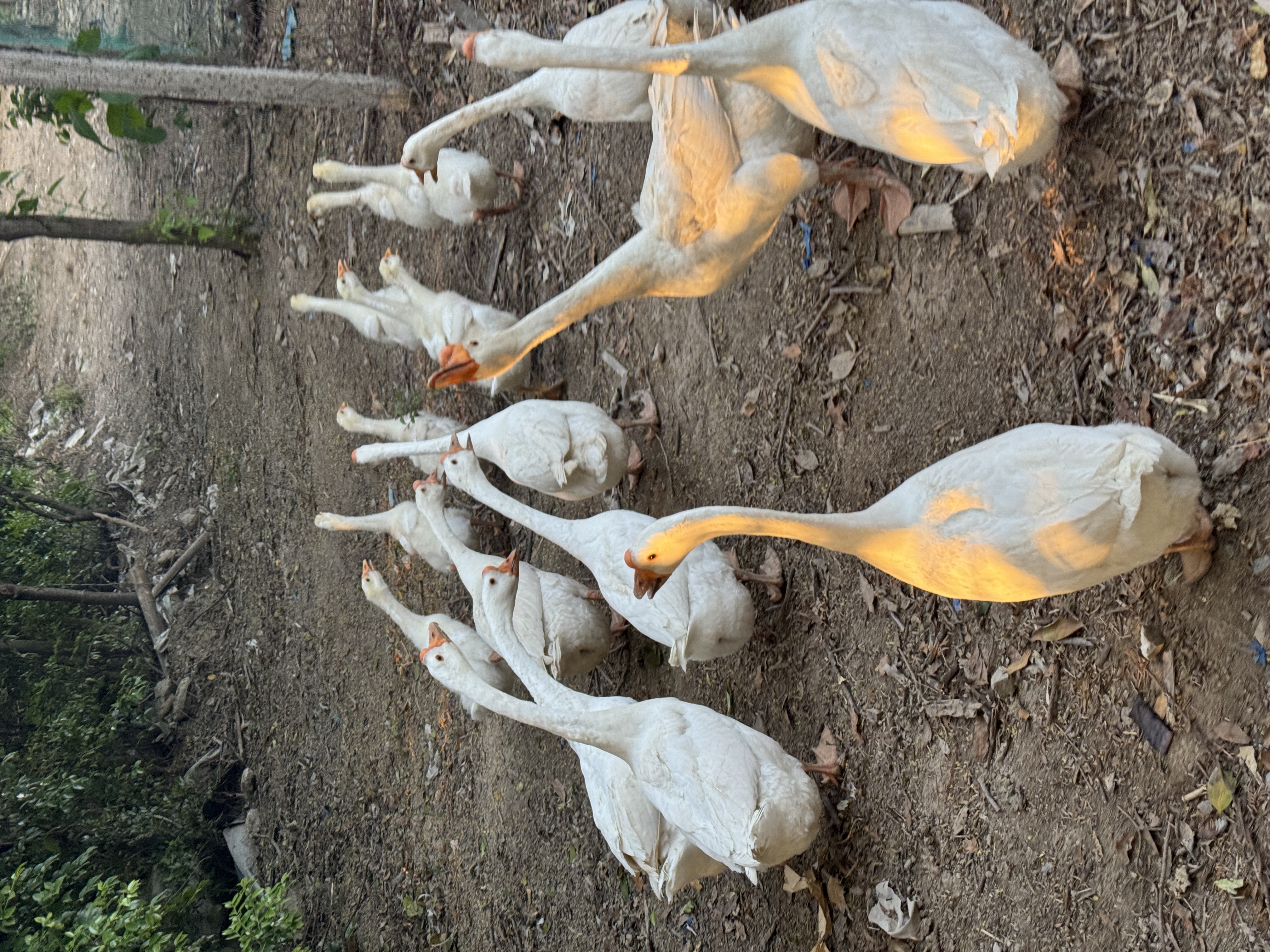 最后一个坡下来之后,经过几户农家,被大鹅挡住了去路!无奈 只好在这休息片刻,等鹅散去,继续赶路!