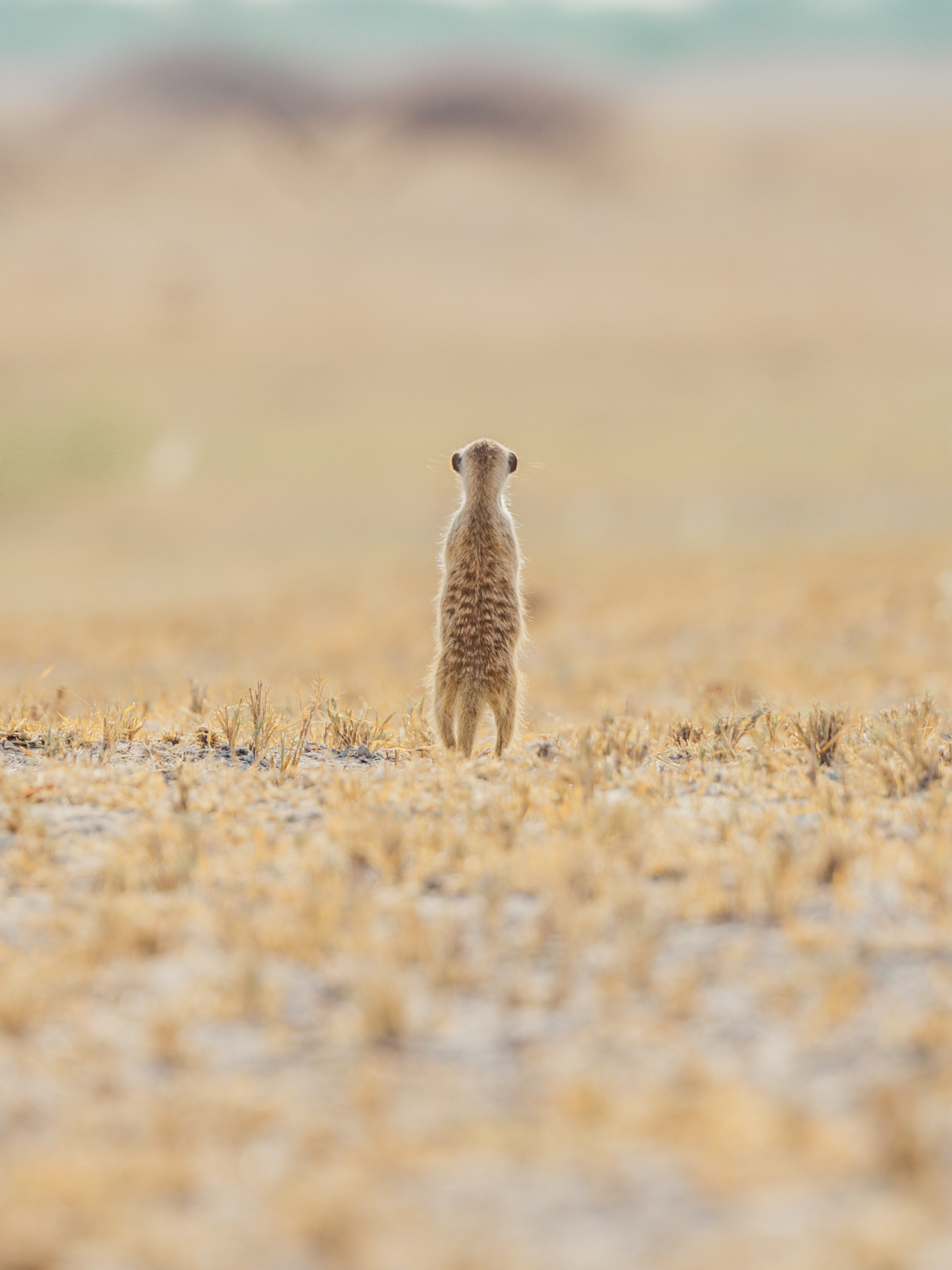 趴在盐沼炽热的地面上,我与一群狐獴共享了某个魔幻时刻。它们轮流站岗的习性让拍摄变得轻松——当哨兵直立警戒时,用200mm端就能拍到《狮子王》丁满同款姿势。盐沼的纯白地面形成天然反光板,即使逆光也能获得良好细节。