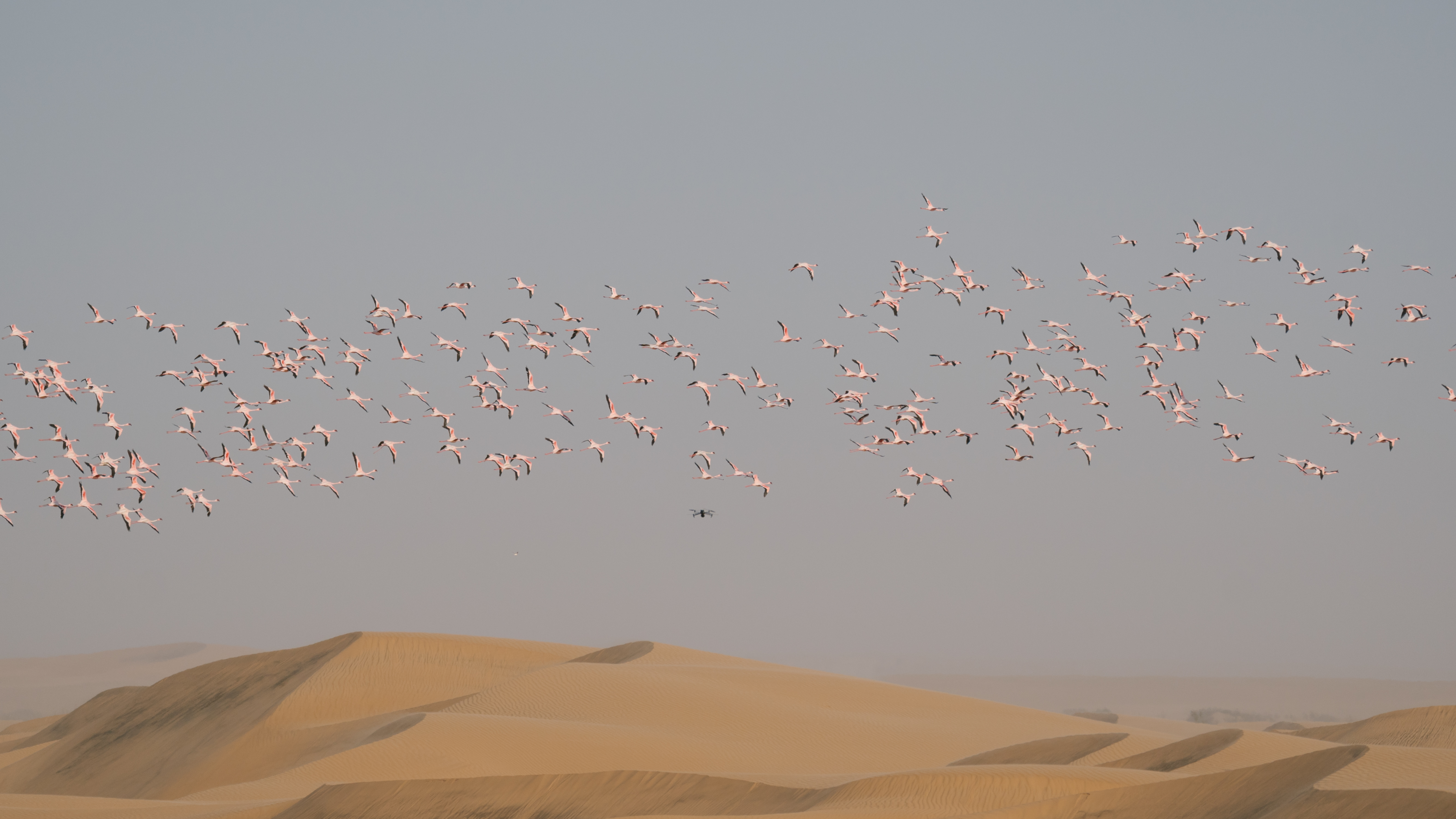 航拍警示: 保持100米以上高度(火烈鸟易受惊)