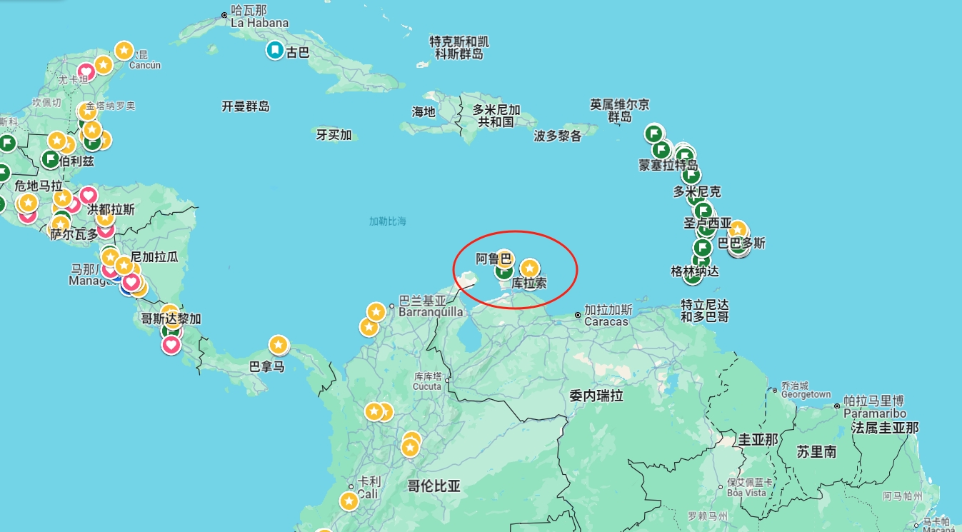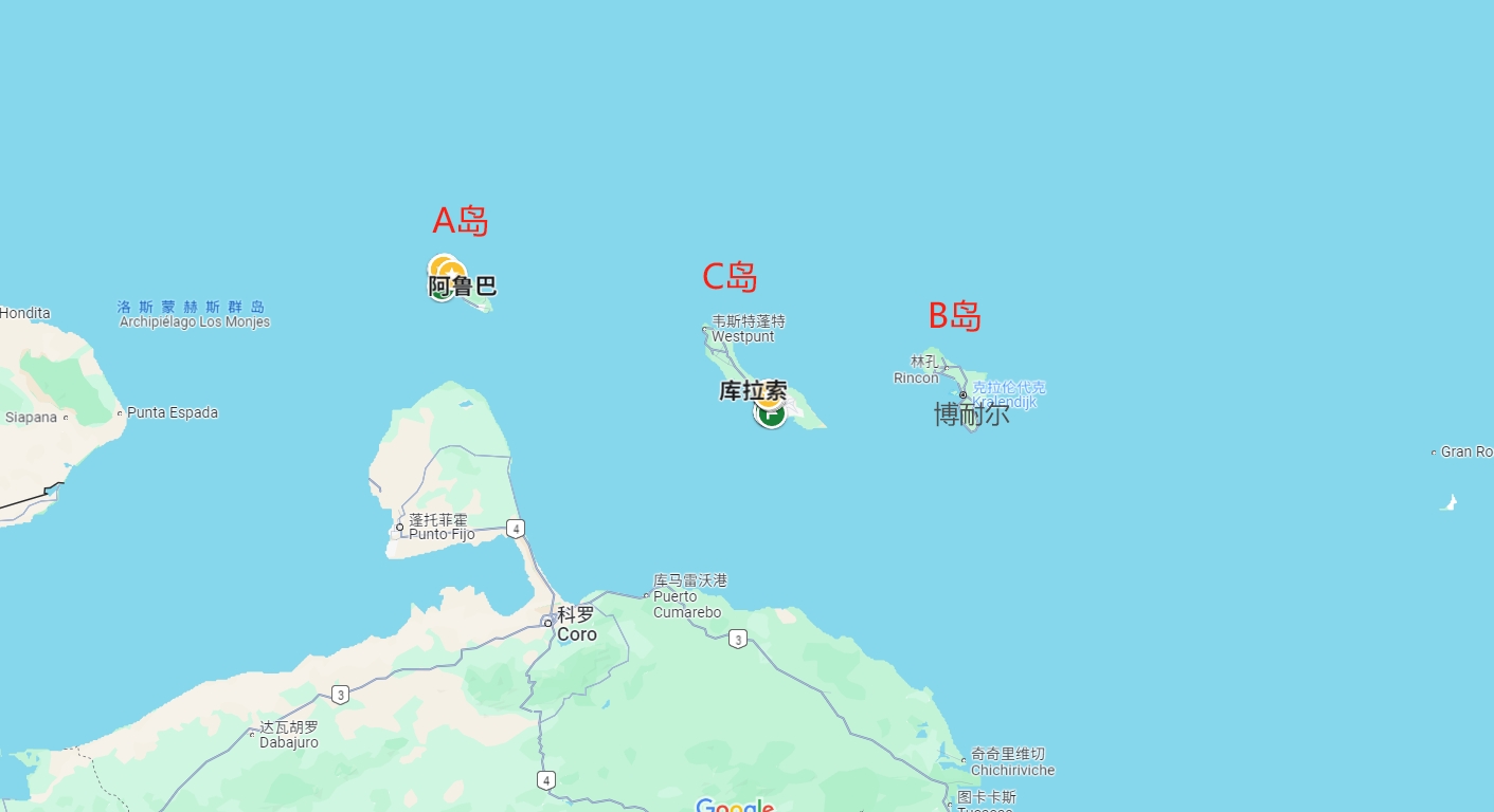 加勒比海 域有这么三个小岛,被称为ABC岛,这三个小岛离 委内瑞拉 非常非常近,但和 委内瑞拉 没有半毛钱关系。A岛名 阿鲁巴 (Aruba),B岛名博奈尔(Bonaire)C岛名 库拉索 (Curacao),所以正好连起来是ABC。他们隶属 荷兰 ,但每个岛属性又不一样,A和C岛都属于 荷兰 王国的自治国,但B岛属于特别行政区,我也没搞清楚区别。