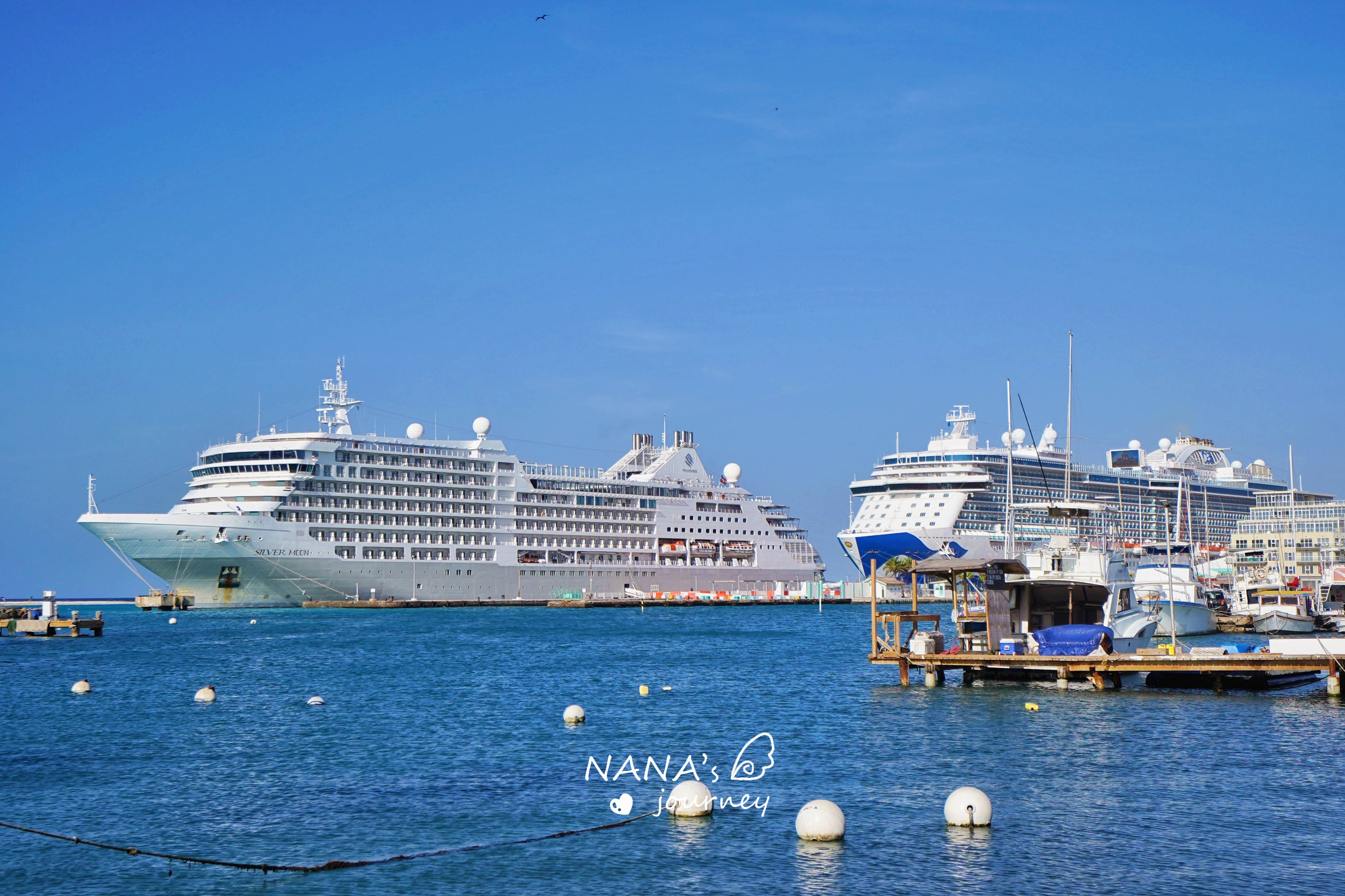 除了昂贵的度假酒店,这里也是热闹的码头, 加勒比海 域的邮轮都要停靠在此,我到的这几天,码头就停靠着银海邮轮(超级贵,一周短行程1w刀单人起)和公主邮轮。