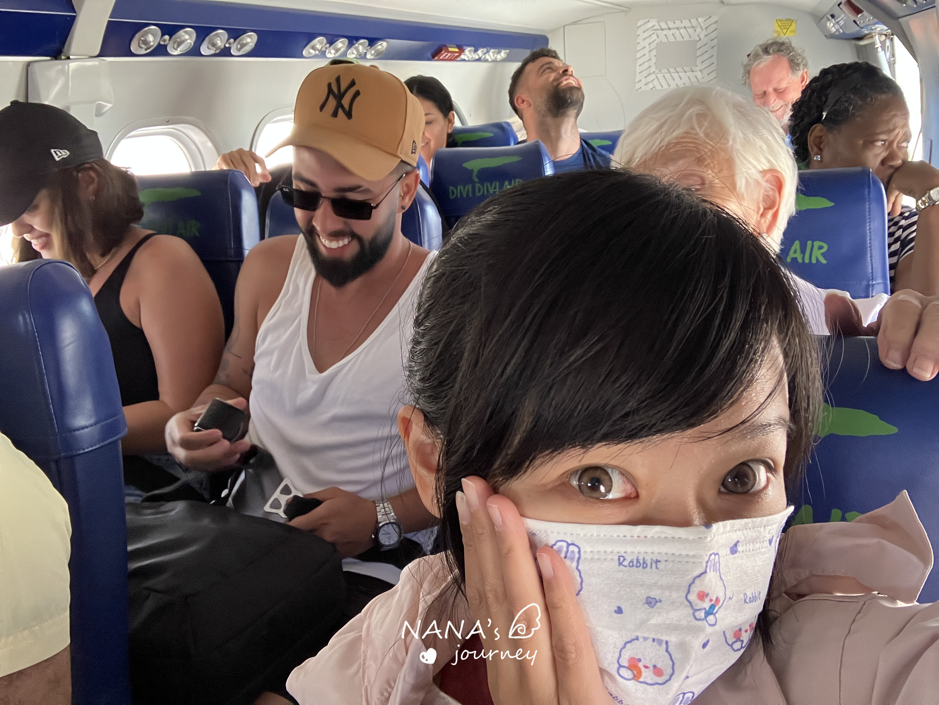 这三个岛虽然离的不远,但主要的交通方式也就邮轮和飞机。ABC 三岛 也算是 美国 和附近几个国家的度假胜地了,飞机上的游客多的很。后来仔细观察了下,除了开始知道的 巴拿马 航空和 哥伦比亚 的avianca外,大部分都是 美国 的几大航空公司。还有经停多岛的航线, 比如 我离岛的 苏里南 航空。abc岛之间还有当地的航空公司,除了各平台售卖的外,还有一种小型飞机,这次我坐的就这种,有点搞笑。