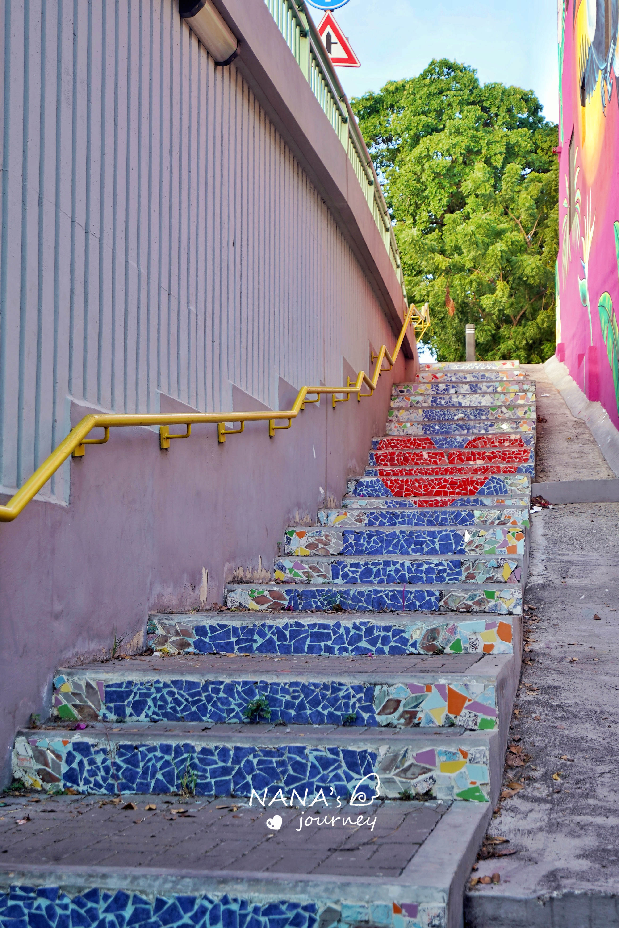 跨过民居上方有一条C岛的主干道,而主干道两侧的楼梯则是这片区域最有特色的瓷砖楼梯,用瓷砖拼了很多好看的图案,不过附近有居民在这里抽x,所以尽量避免正面沟通。