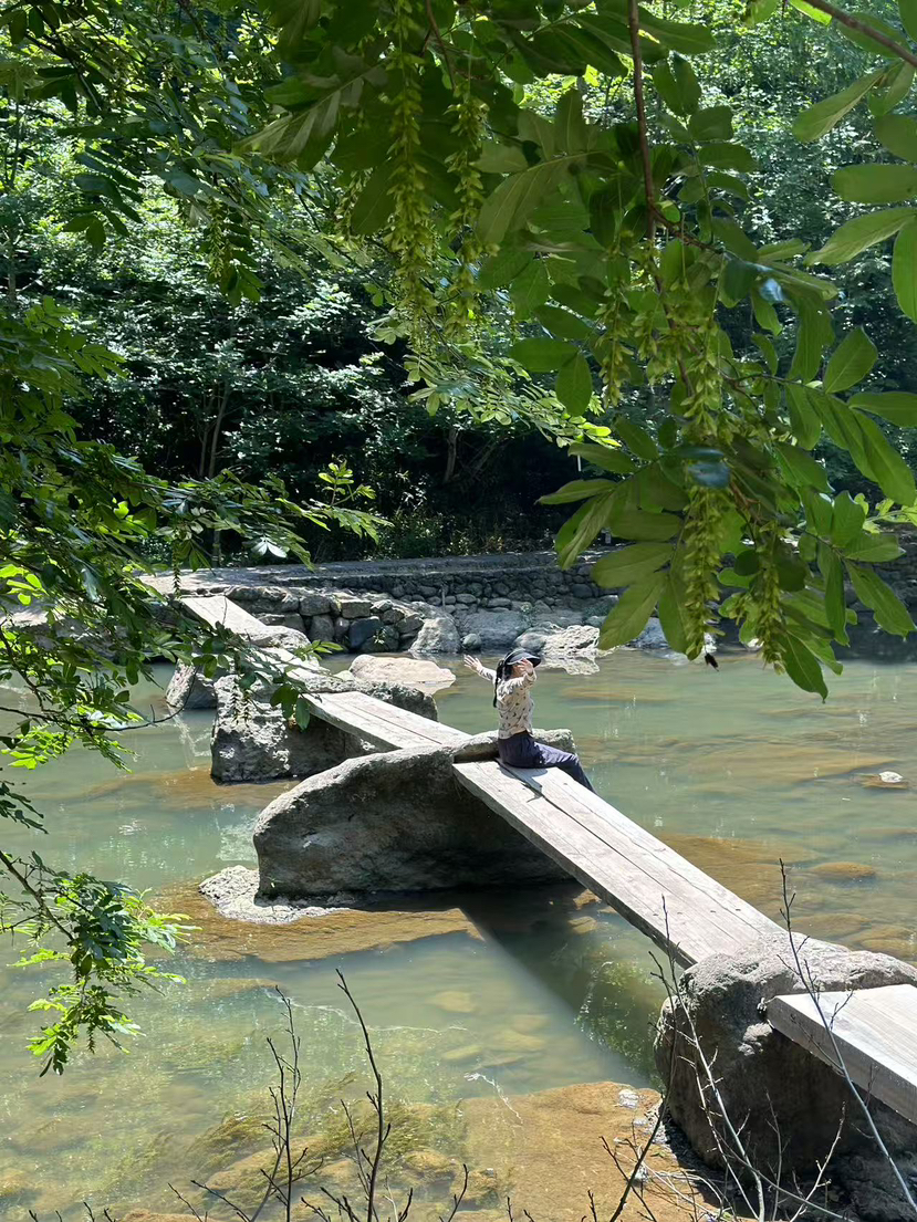 从丁村起步,韩妃江如碧玉带缠山绕谷。古道全程伴溪蜿蜒,浅滩处卵石铺成天然按摩步道,深潭似打翻的翡翠匣子,掬水洗脸竟洗出爽肤水广告的清凉感。林间厚积的枫杨叶踩出“咔嚓”脆响,树冠漏下的光斑在青苔上跳弗拉明戈,山风过处,负离子浓度高到醉氧。
