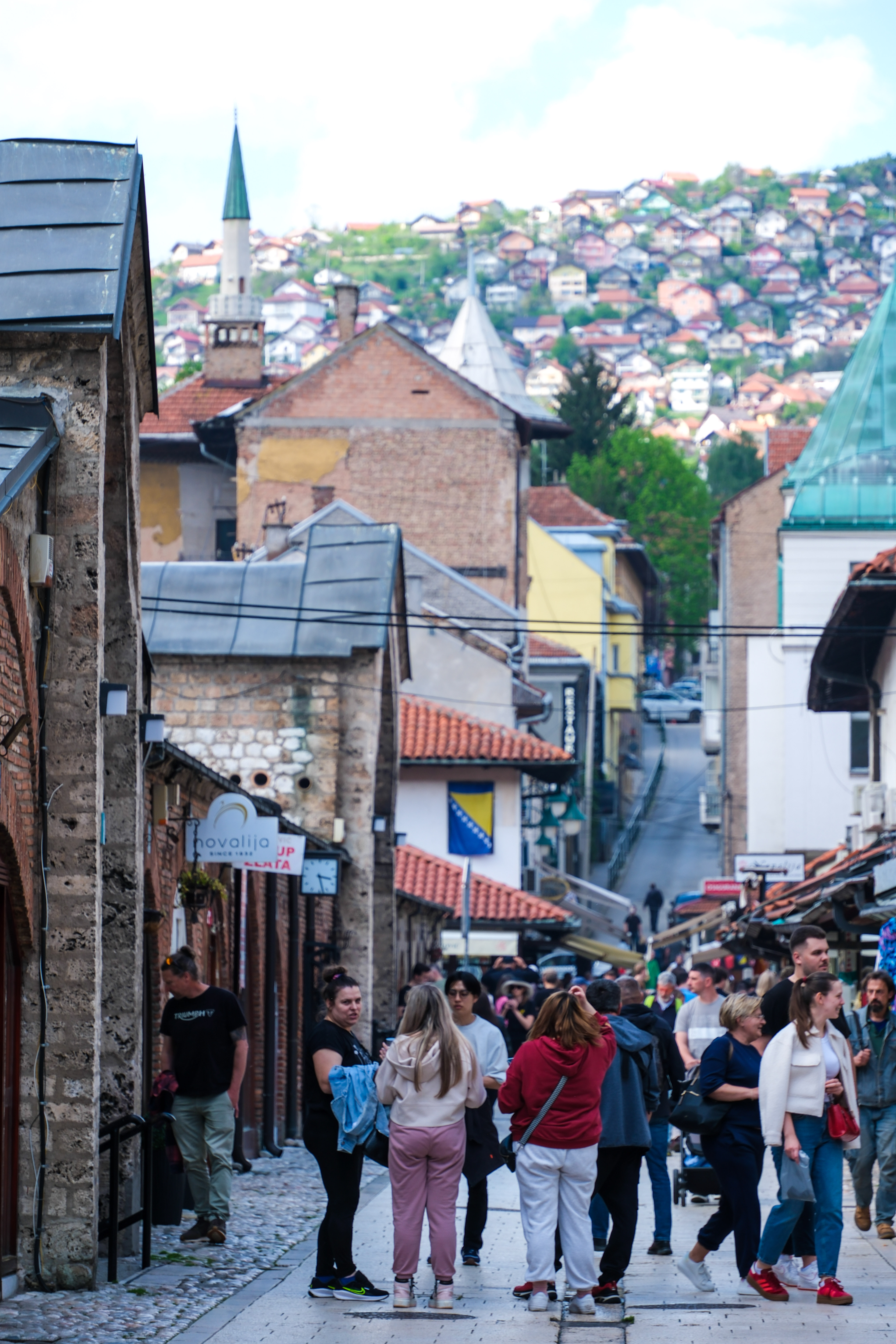 如图我们已经抵达萨拉热窝。萨拉热窝是波黑的首都,位于这一“心形之国”中央,其名字源于土耳其语,意为“环绕宫殿的平地”。她是目前唯一被提名“欧洲文化之都”的非欧盟国家的城市,也是能让天主教、东正教、犹太教、伊斯兰教比邻共存的“欧洲耶路撒冷”。如今的萨拉热窝正在从战争的创伤中恢复,老城街头再次繁华,现代化建筑拔地而起,那些因多元文化造成的矛盾正逐渐被消化,转变成和谐共存的千般面孔。