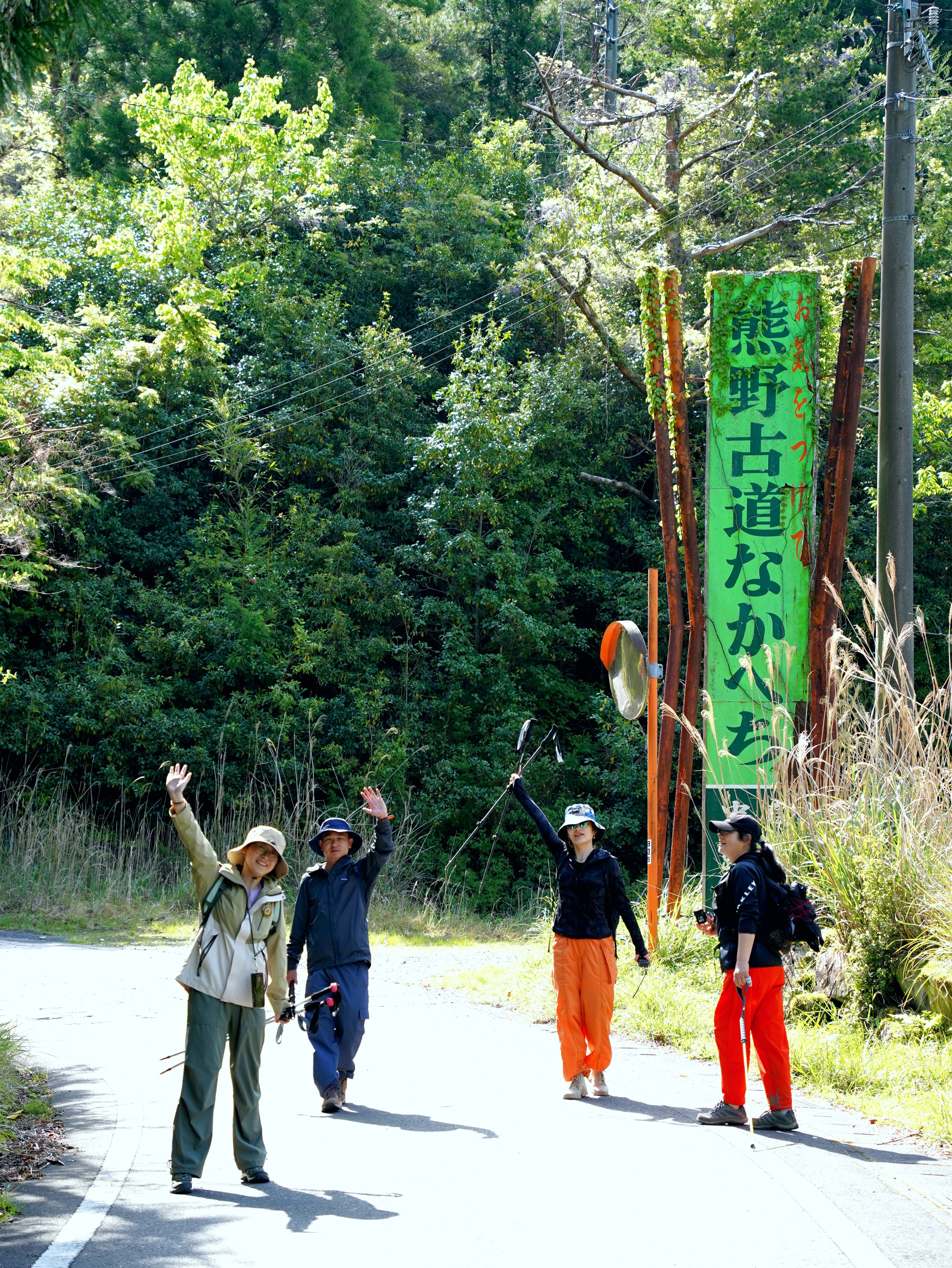 一路聊着天,一是容易忽略这个路牌,二是即使看到了这个路牌,也很容易被“熊野古道”4个大字误导……