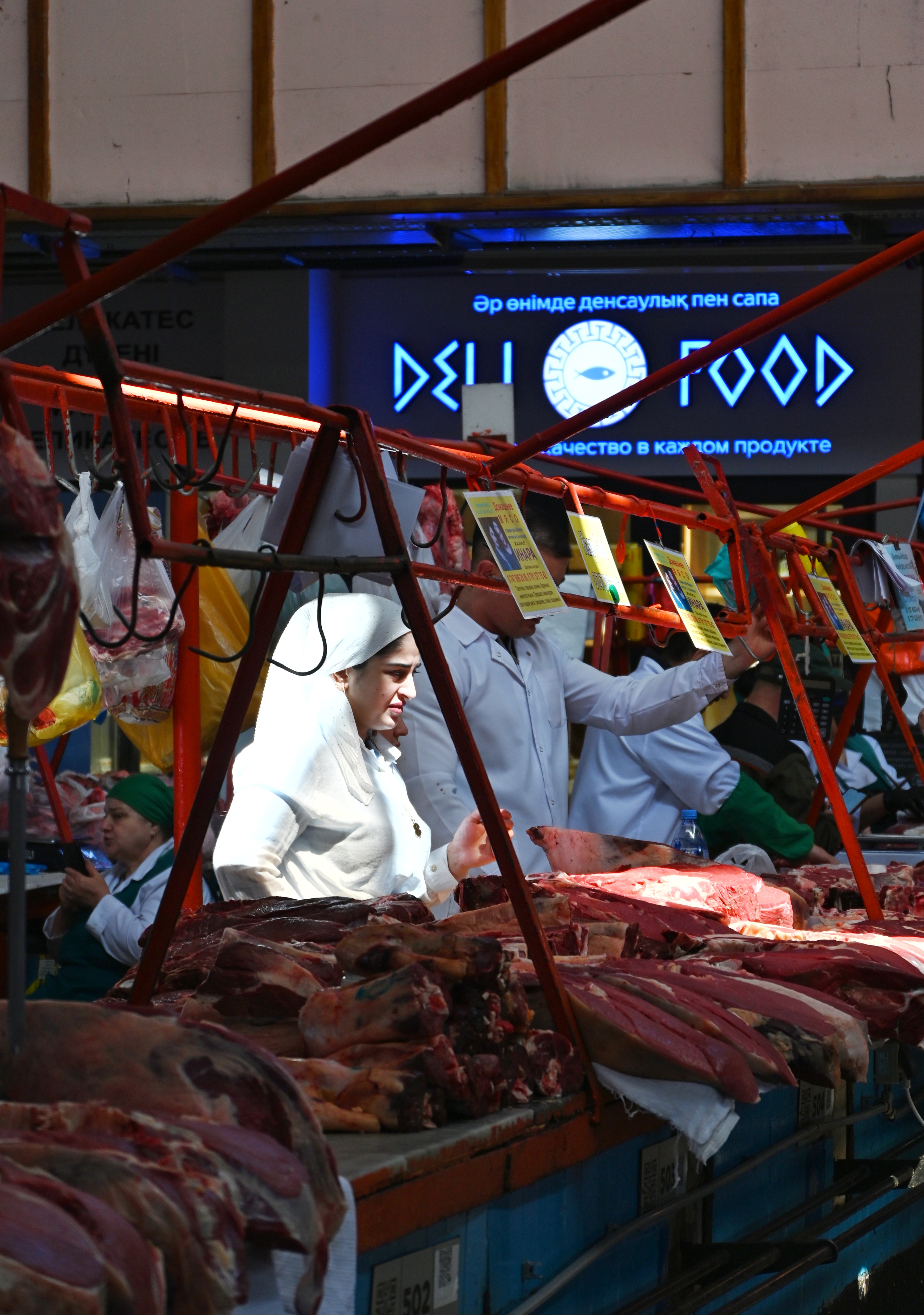 绿色巴扎市场,历史可追溯至1875年,最初是中亚商人的贸易中心,1975年以钢筋混凝土结构为主进行重建,因建筑外墙和内部装饰以绿色为主色调而得名,卖水果、干果、各种肉类、手工艺品等等。
