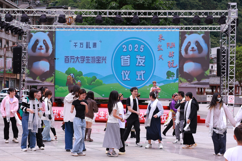 清晨07:30从羊犀立交地铁站启程,约3.5小时车程抵达宝兴县,并在此享用午餐。行程恰逢“百万大学生游宝兴”活动首发仪式,当地工作人员以敬献哈达、特色歌舞表演及锅庄舞互动等方式,为旅途增添别样惊喜。