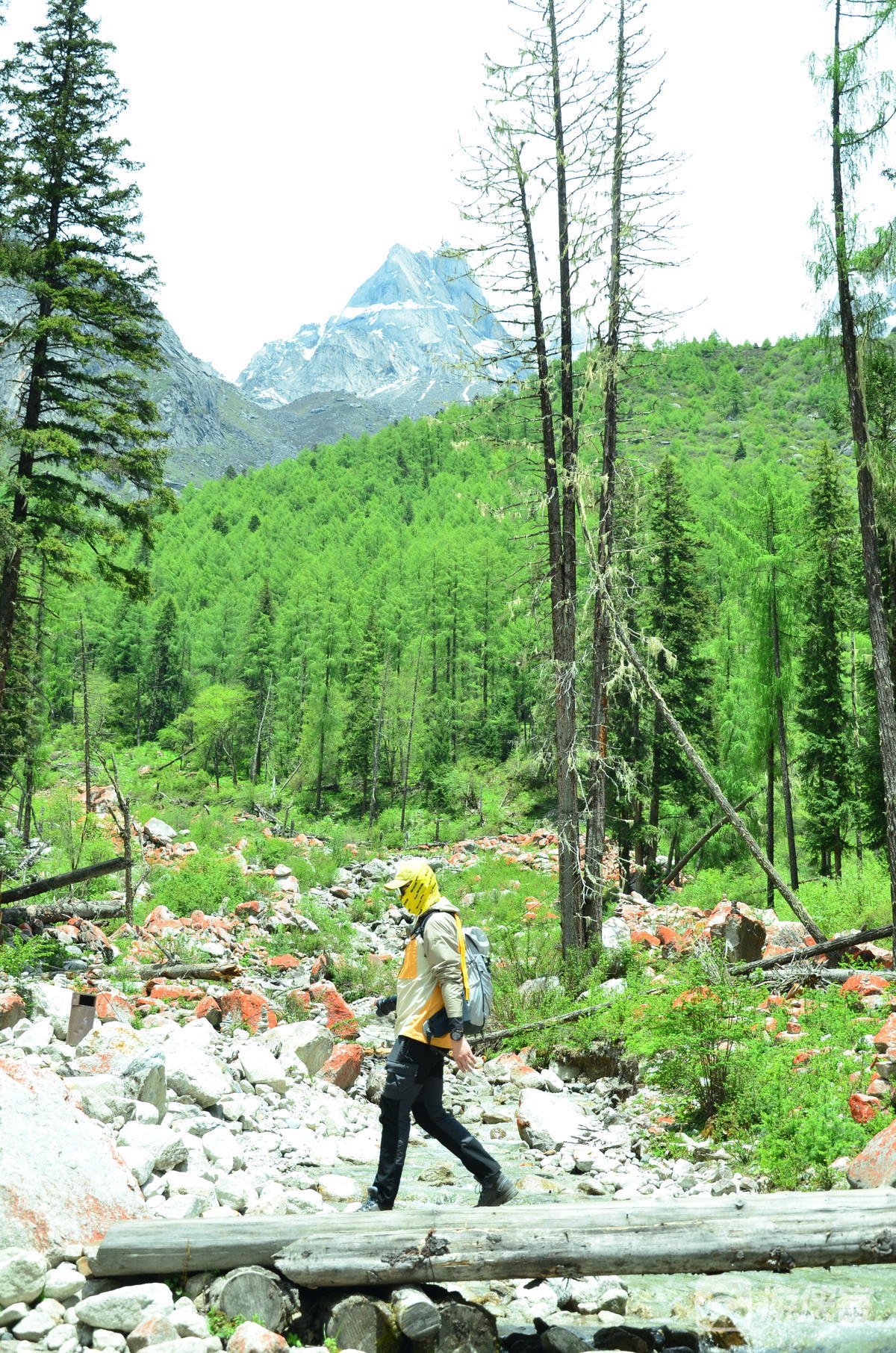 告别木骡子,步履深入沟壑腹地。原始森林渐次稀疏,代之以低矮的高山灌木与开阔的河滩。栈道朽木在脚下呻吟,横跨溪流的独木桥湿滑如镜。乱石滩上,每一步都需全神贯注,寻找最稳固的落点。水流湍急处,踏石过河,冰寒刺骨的雪水瞬间穿透鞋袜,激得人一个冷颤。远处,婆缪峰嶙峋的刃脊在云雾中若隐若现,沉默地见证着行者的渺小与坚韧。身体疲惫积累,呼吸在稀薄空气中变得粗重,目标却只有一个:前方,叉子沟尾营地。