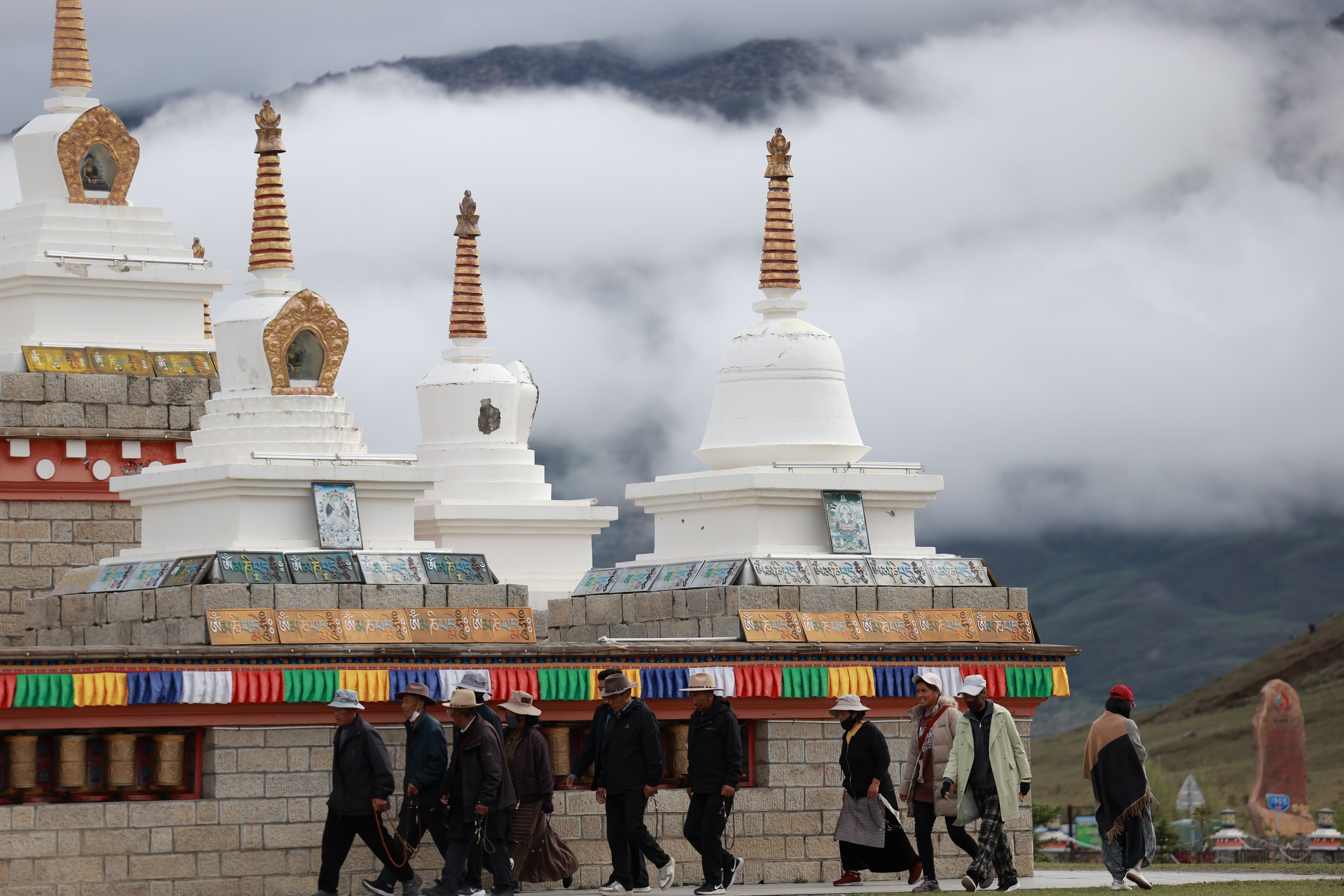 稻城县在晨雾中渐渐隐退轮廓,国道似一卷铺向天际的古铜色经文。尊胜塔林的白塔群如大地竖起的玉笋,塔尖挑着尚未消散的晓月。晨光熹微时,青石板上洇出几圈浅淡水痕,那是转经老人离去后留下的时间印章。转经筒柄端的微温早被晨风舔舐殆尽,唯有铜铃叮咚的余韵还在柏树枝头缠绕,如同被遗落人间的一小节梵音清唱。