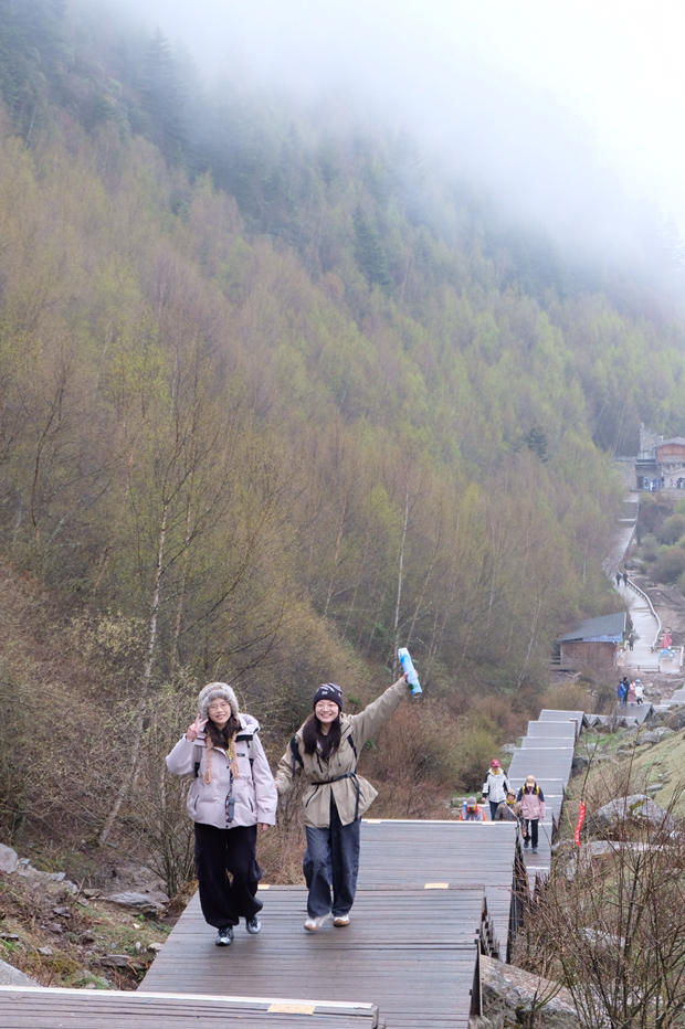 抬头望去,雪山在近处静静伫立,那纯粹的白和周围的绿形成鲜明对比,震撼得让人想哭!走累了,随便找块石头坐下,身边是清脆的鸟鸣,时间好像都变慢了。