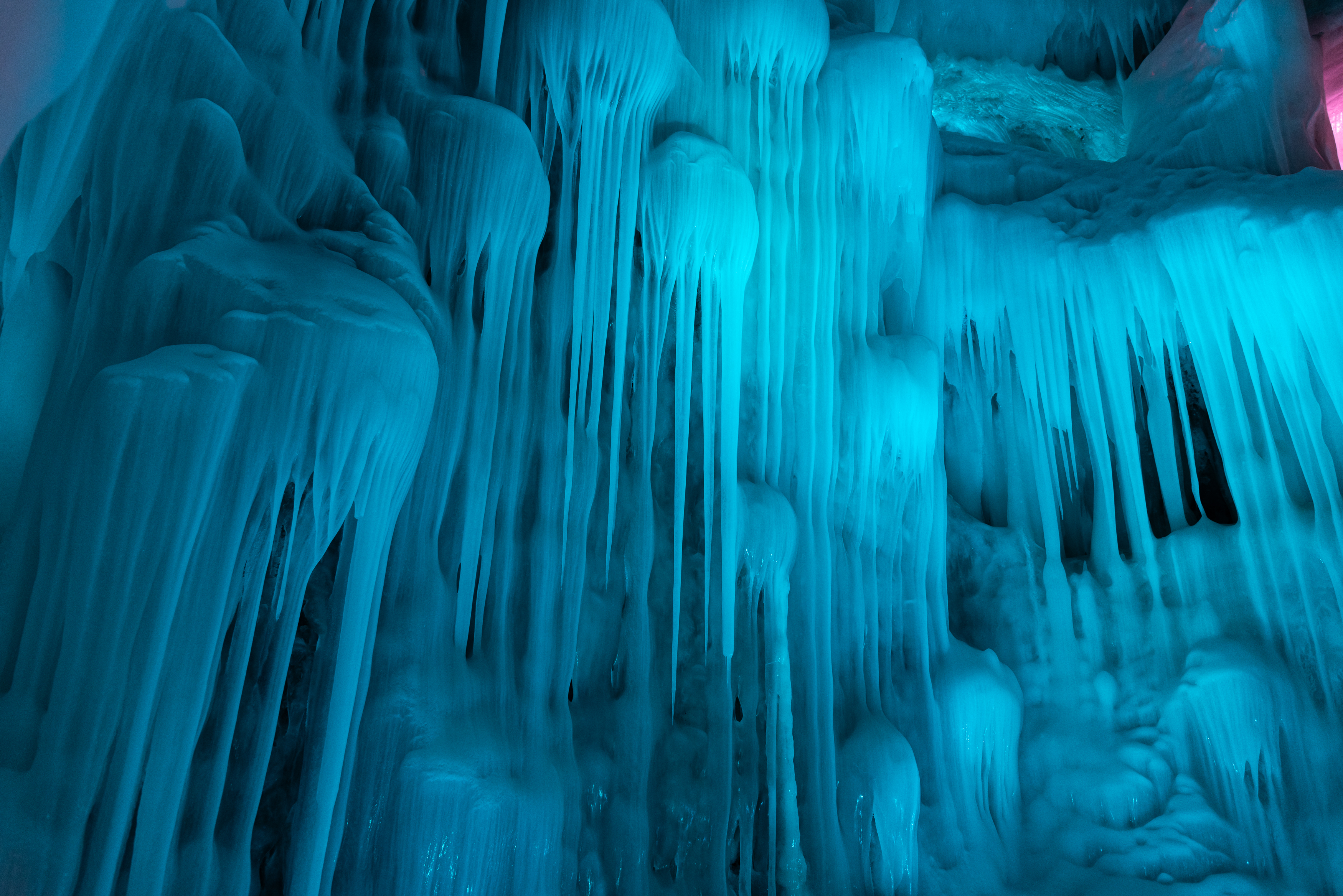 怎么样?冰洞是不是很漂亮?其实现场看比照片更漂亮,随着灯光变化,有更多的色彩。由于光线比较暗,这里不是很好拍,尽量靠墙稳定支撑,大光圈,高感光度,大广角都用上吧。