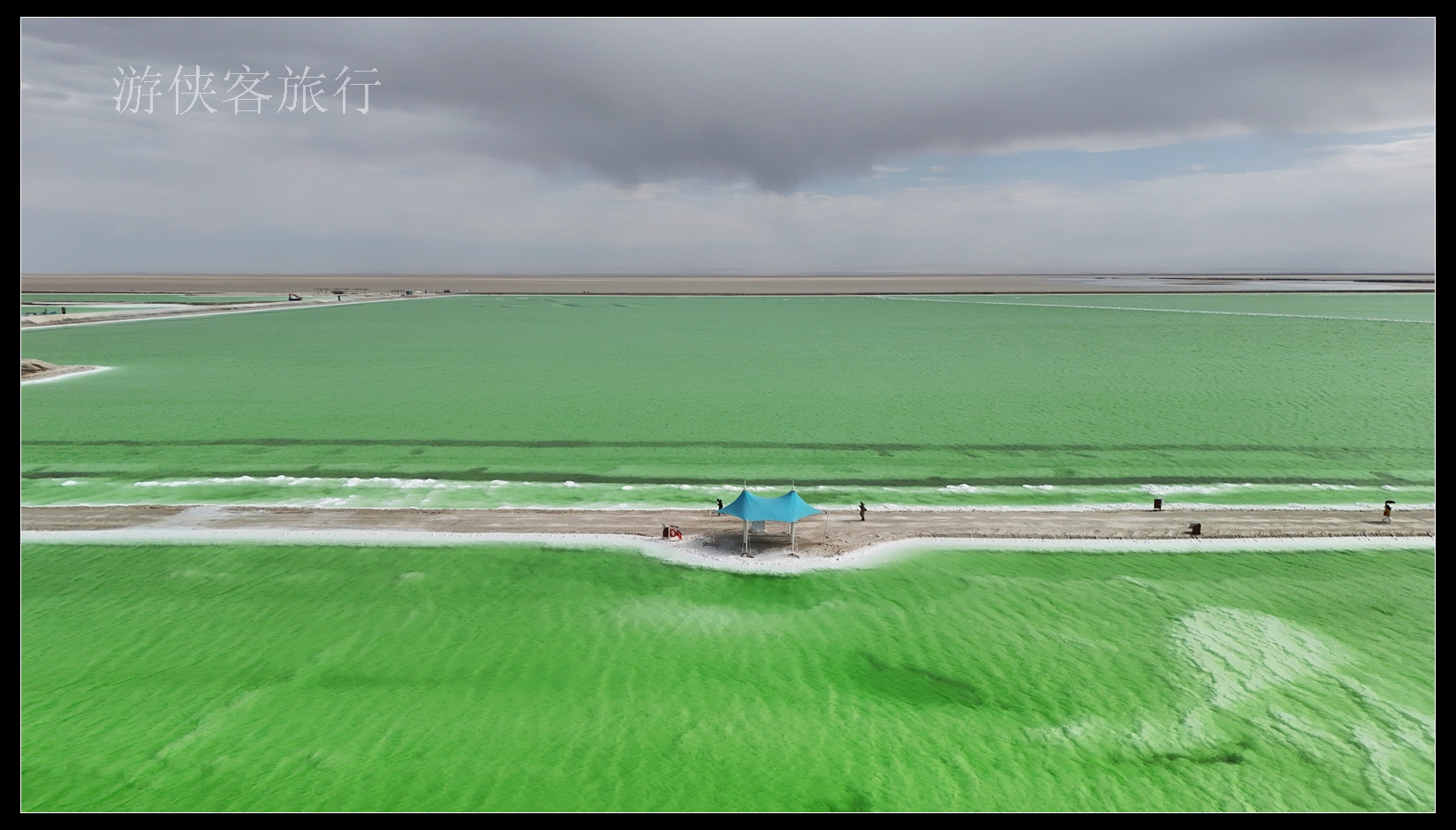 茫崖翡翠湖 ,它位于尕斯湖的东部边缘,茫崖行委花土沟镇西南侧。距政府所在地约23公里,南依巍峨的昆仑山,北靠阿尔金山,是一个富饶而美丽的人工盐湖