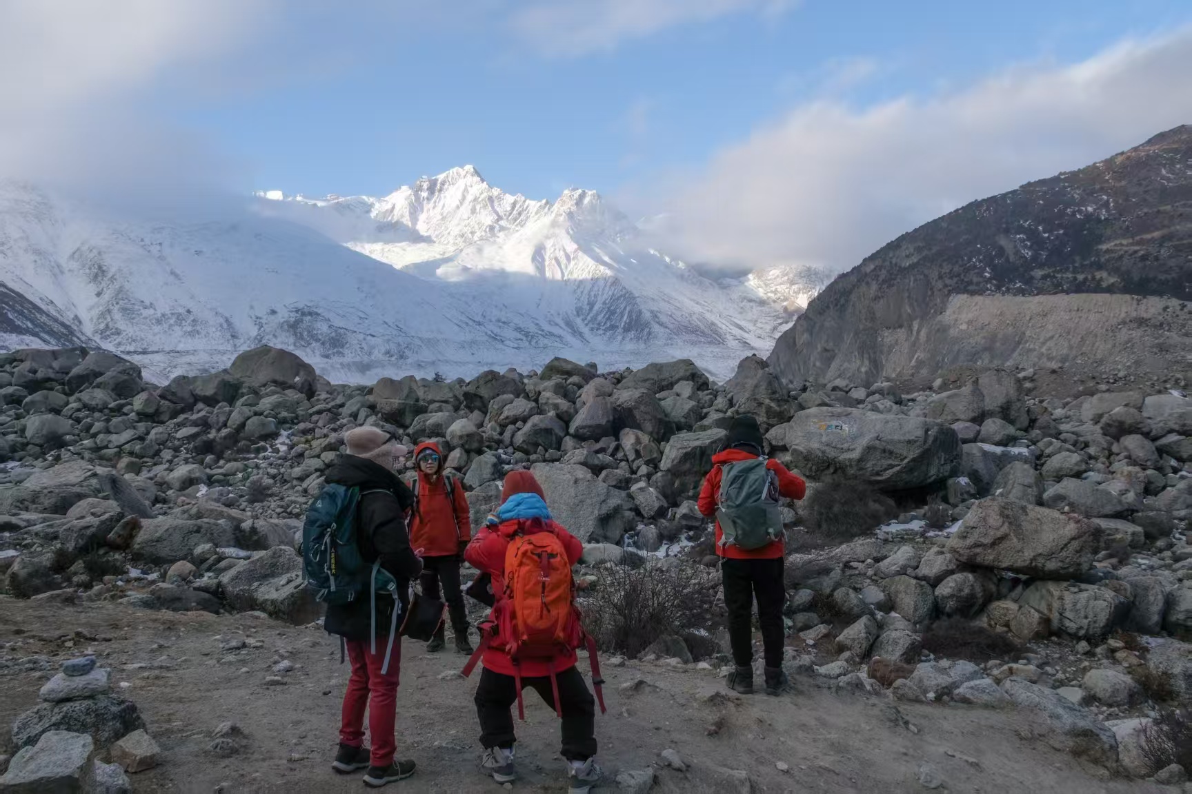 站在冰碛湖畔仰望,巨大的冰墙如同凝固的河流,沉默而威严地矗立在天地之间。四周环绕着荒凉粗犷的冰碛丘陵和裸露的岩壁,远处雪峰在云雾中若隐若现。来古冰川以其原始、野性、充满地质力量感的面貌,让人仿佛置身于冰河世纪的边缘,感受着地球脉动的深沉与壮阔。
