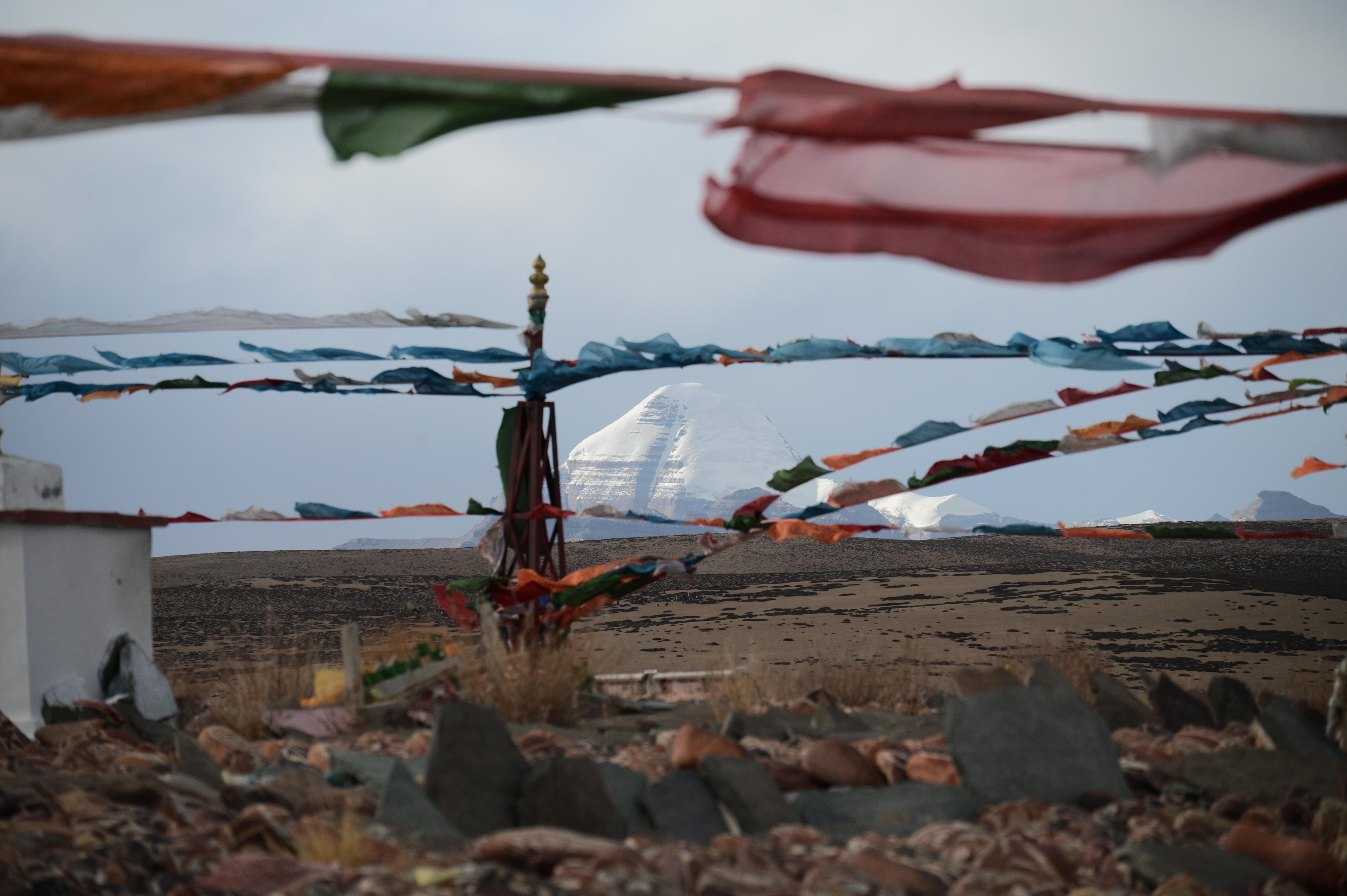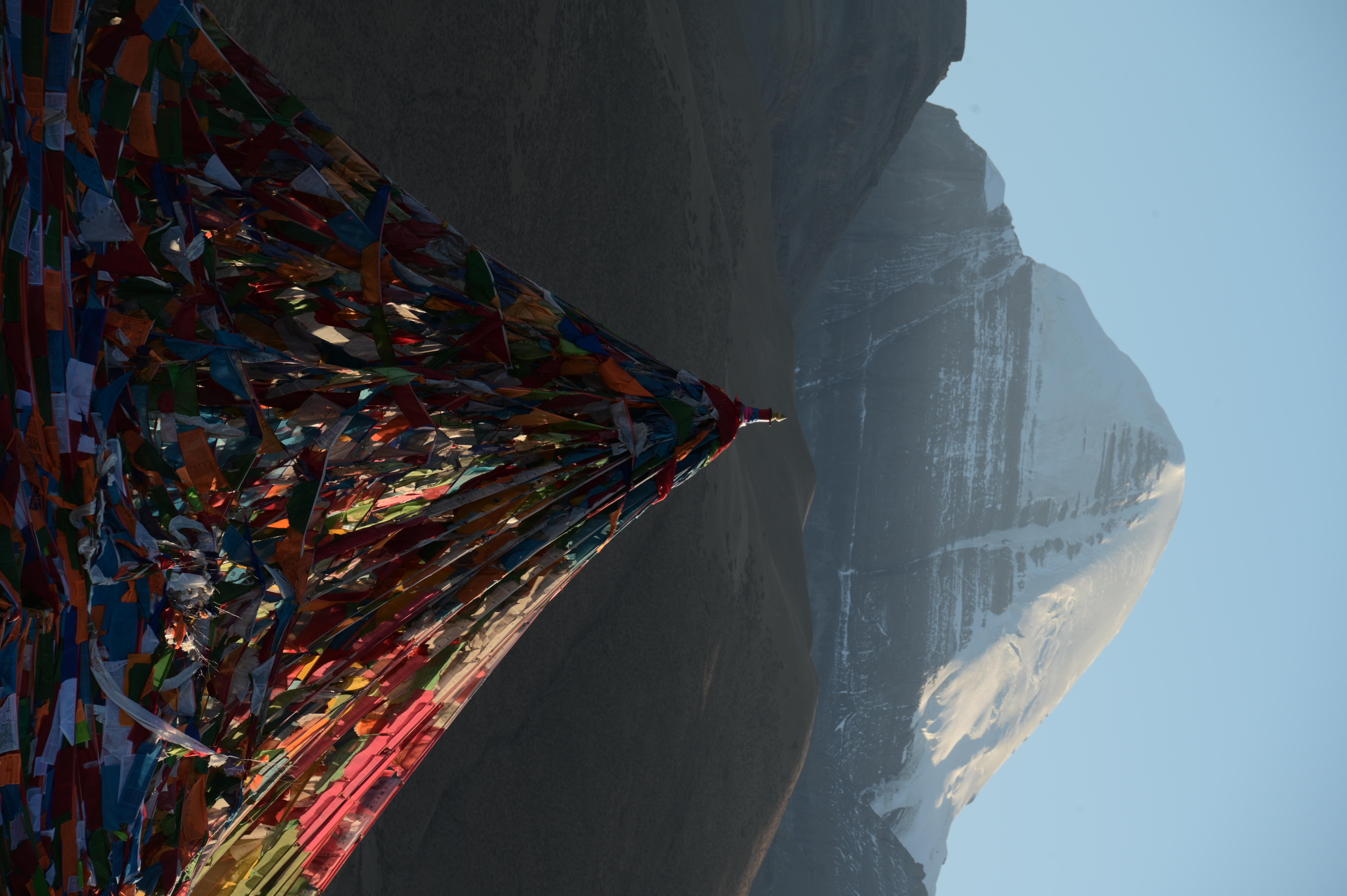 环绕神山脚下,是绵延52公里的转山道。终年可见来自四面八方的虔诚信徒,身着不同服饰,手持转经筒或磕着长头,在海拔5000米以上的荒原上艰难跋涉。五彩经幡在山口(如卓玛拉山口)和圣迹处密集飘扬,玛尼堆遍布路途。风中回荡着诵经声与风铃声,空气中弥漫着桑烟的气息。荒凉广袤的景致(草甸、荒漠、雪山)更衬托出神山超越凡尘的孤绝与神圣。