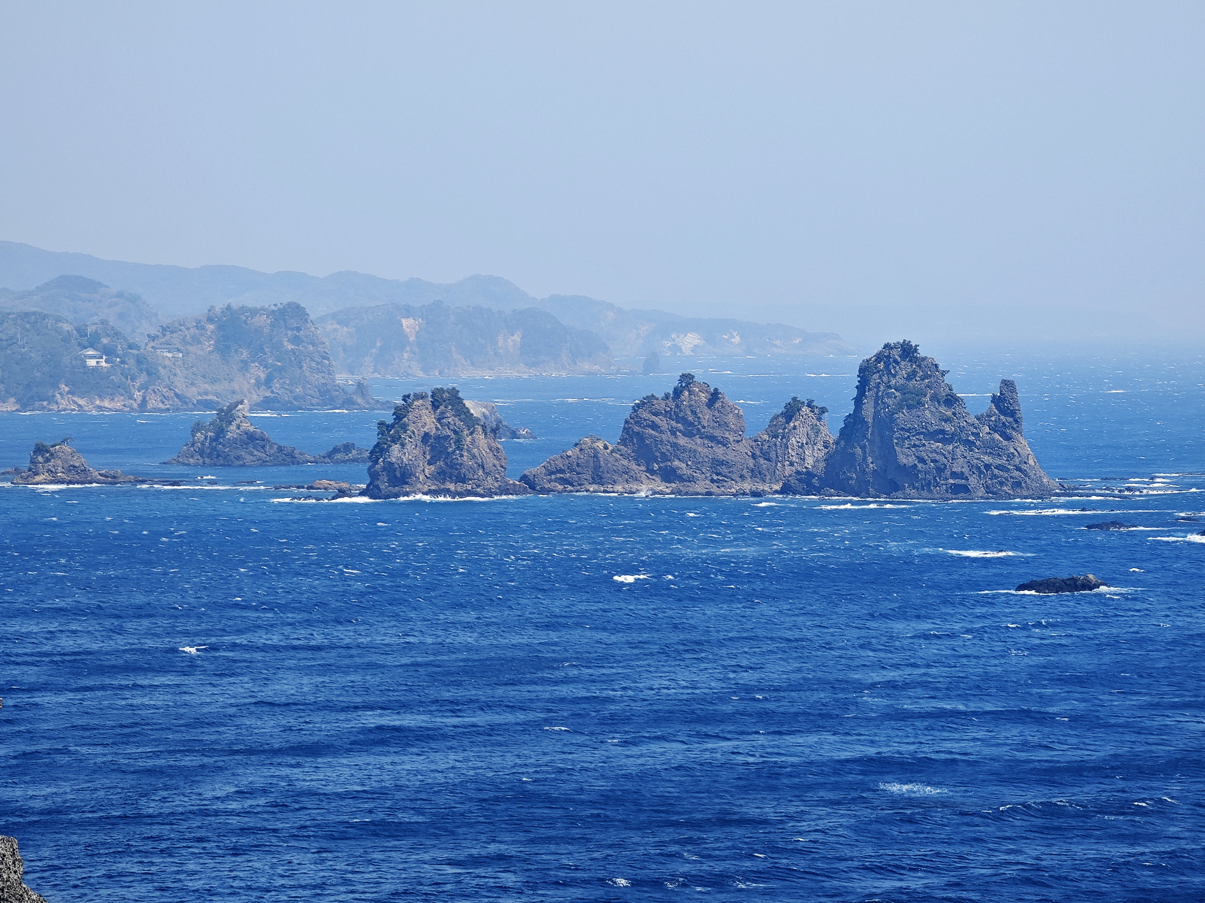 也好,我们就先细细游览天窗洞景区,然后岩海岸线往南步行。在泽田公园(沢田(さわだ)公園(こうえん)です),我们在《孤独星球》推荐的露天风吕,洗了个海边温泉澡,费用一人600日元,包场待遇,超赞!我本想请同伴进来拍个照,又担心有人来就尴尬了。后问同伴,她和我想法一样。这时哪怕有个”翘片”伙伴把把风也好(翘片,杭州话,指多出来配不了对的)。随后,我们沿泽田公园的海岸线,把地图上标示的观景点走了个遍,包括仁科灯塔观景台和兜岩。虽说是春天,在海边的太阳下登上攀下,还是蛮费体力的,还好水管够。我自己的水壶喝干后,就在公园的自动贩卖机买冰镇可乐。