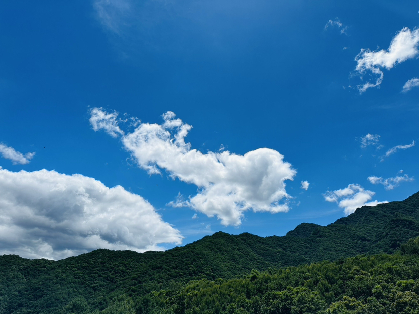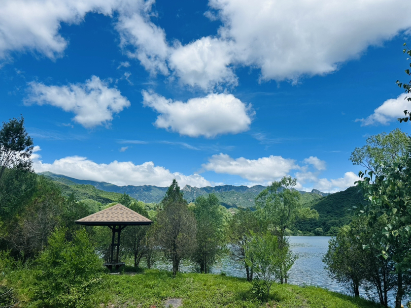 蓝天白云、泉水翠木、清凉舒适、心情舒畅