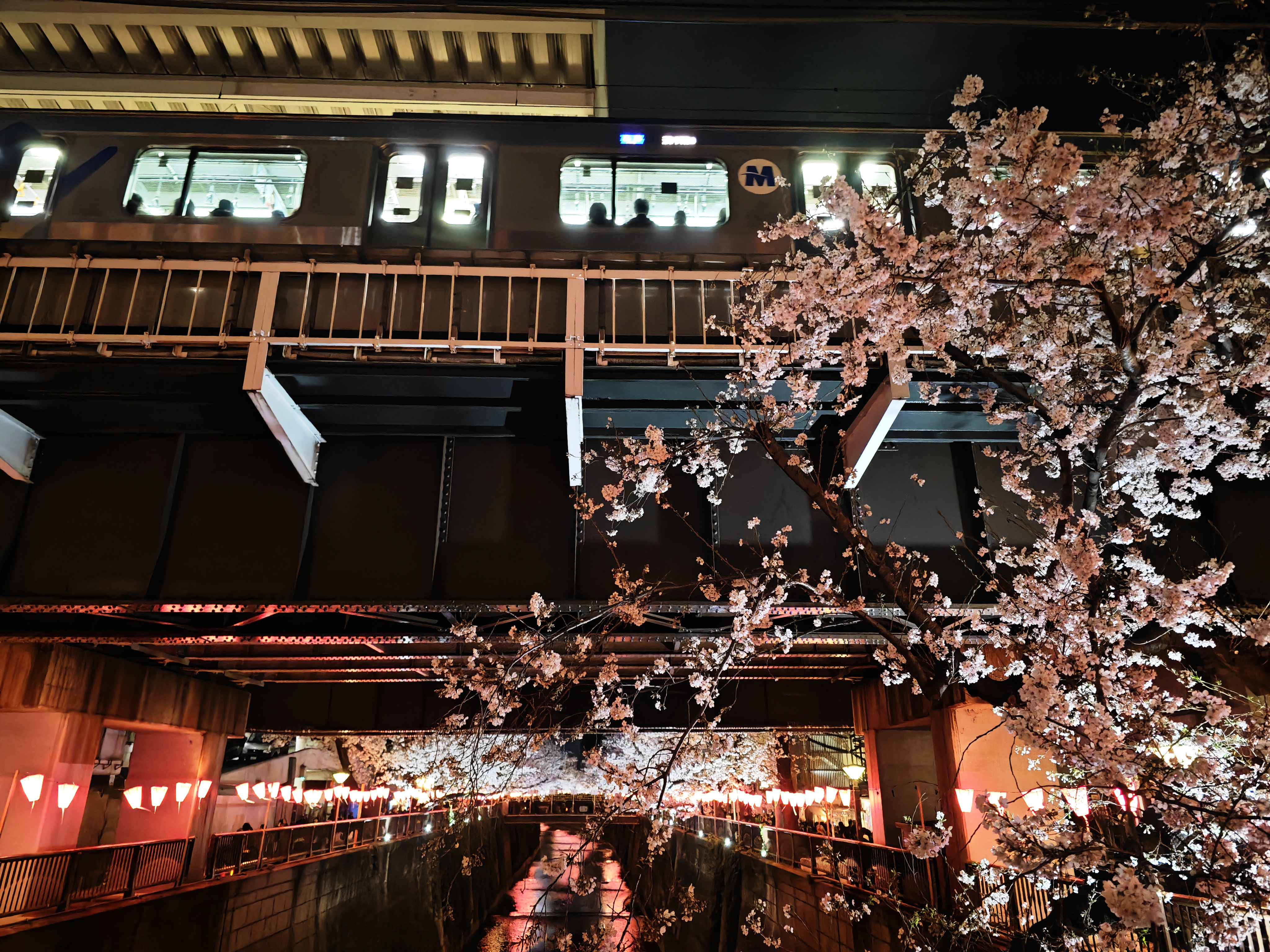 吃过晚饭,我们坐地铁去目黑川。不愧是夜樱圣地,目黑川地铁口人行道的拥挤程度不亚于节假日的杭州龙翔桥。这里也有志愿者维持秩序。