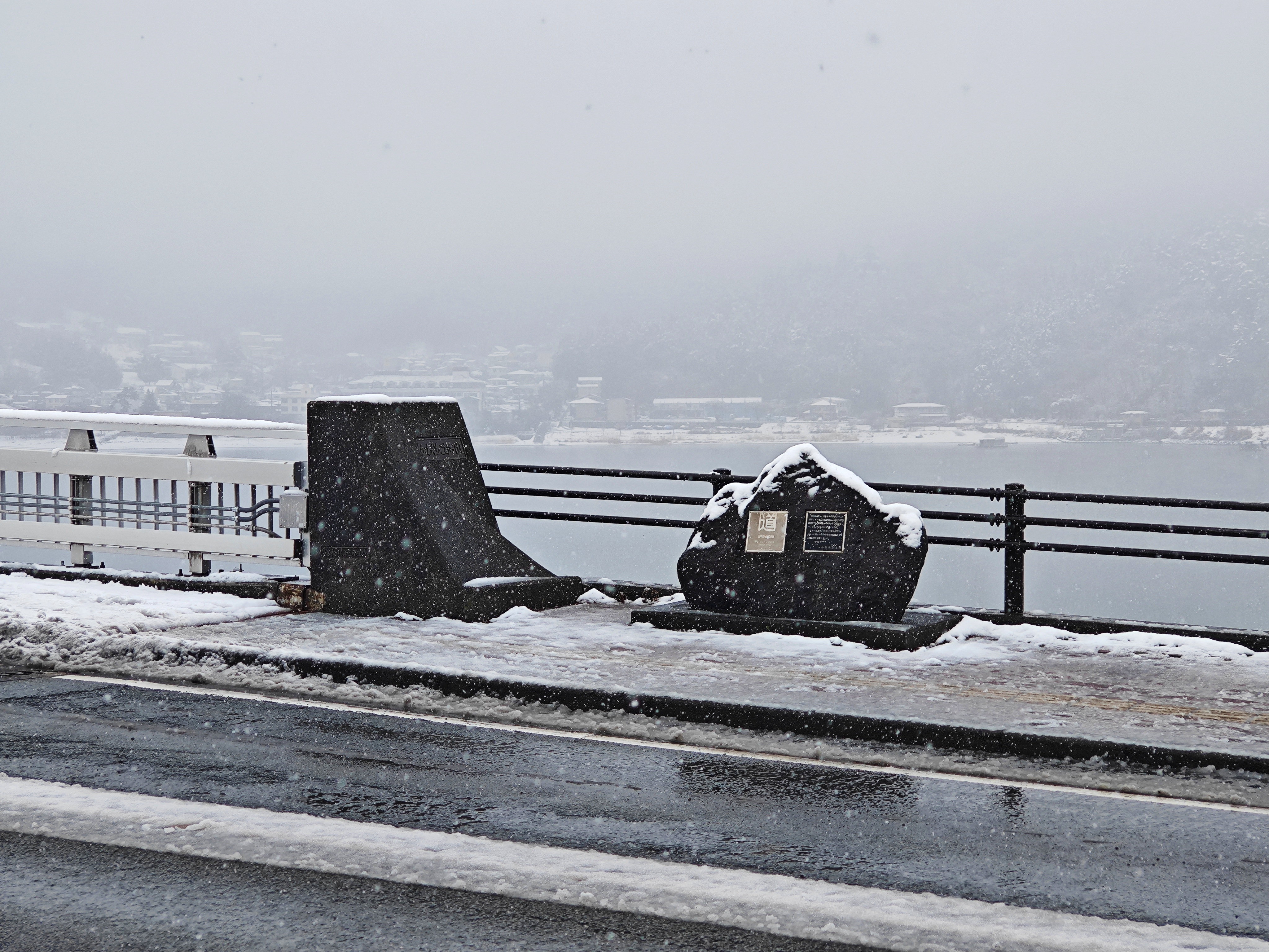 我看时间还有一小时,就决定去湖南岸看看雪中的河口湖。途中遇到不少游客,以国人居多。一位大汉在喊:“富士山,你怎么不露露脸?我们可是大老远来看你啊!”估计这时不分国籍,大家心情一样。