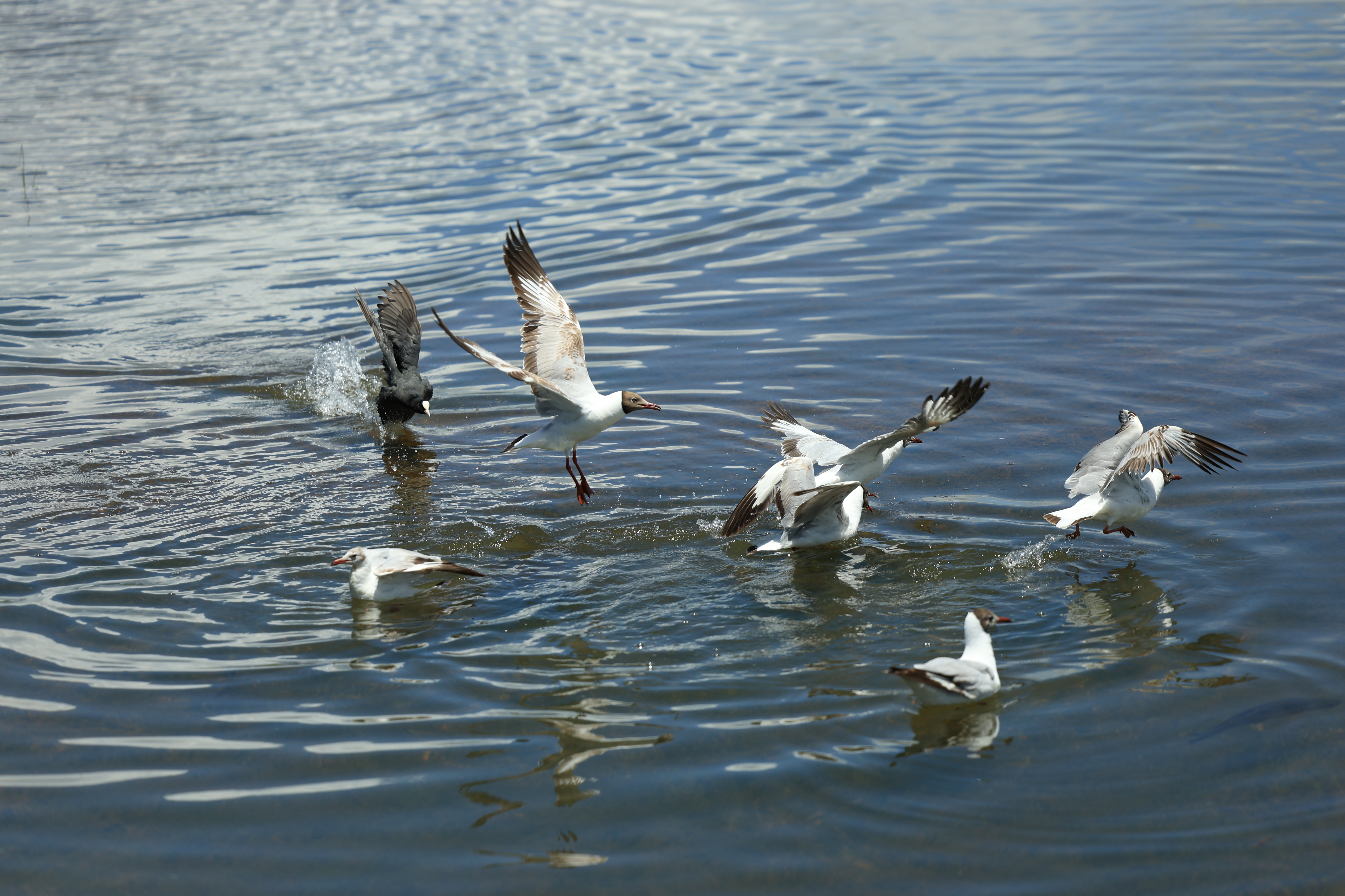 栈道湿得浸出黑油,脚步下是朽木低沉的呻吟。寒气贴着水面爬升,化作白纱浮游,缠绕小腿。偶见一两只黑颈鹤孤悬于水沼,铁铸般立于浅水,修长脖颈缩进厚羽,那抹墨色领结紧贴胸膛,在湿漉漉的背景里冷硬如玄铁浮雕。寒风掠过时,它们单腿独立的身形也如沉静的青铜樽。鸥鸟却不管这些。棕头鸥聚在栈桥起端,灰白羽毛吸饱雨水紧贴身体,却毫不减抢食的骁勇。它们盯准人类指端,面包碎离手便腾作一股灰白旋风,尖喙啄击时溅起细碎水花,嘶哑的聒噪刺透雨帘,俨然湿世界里唯一滚沸的锅灶。
