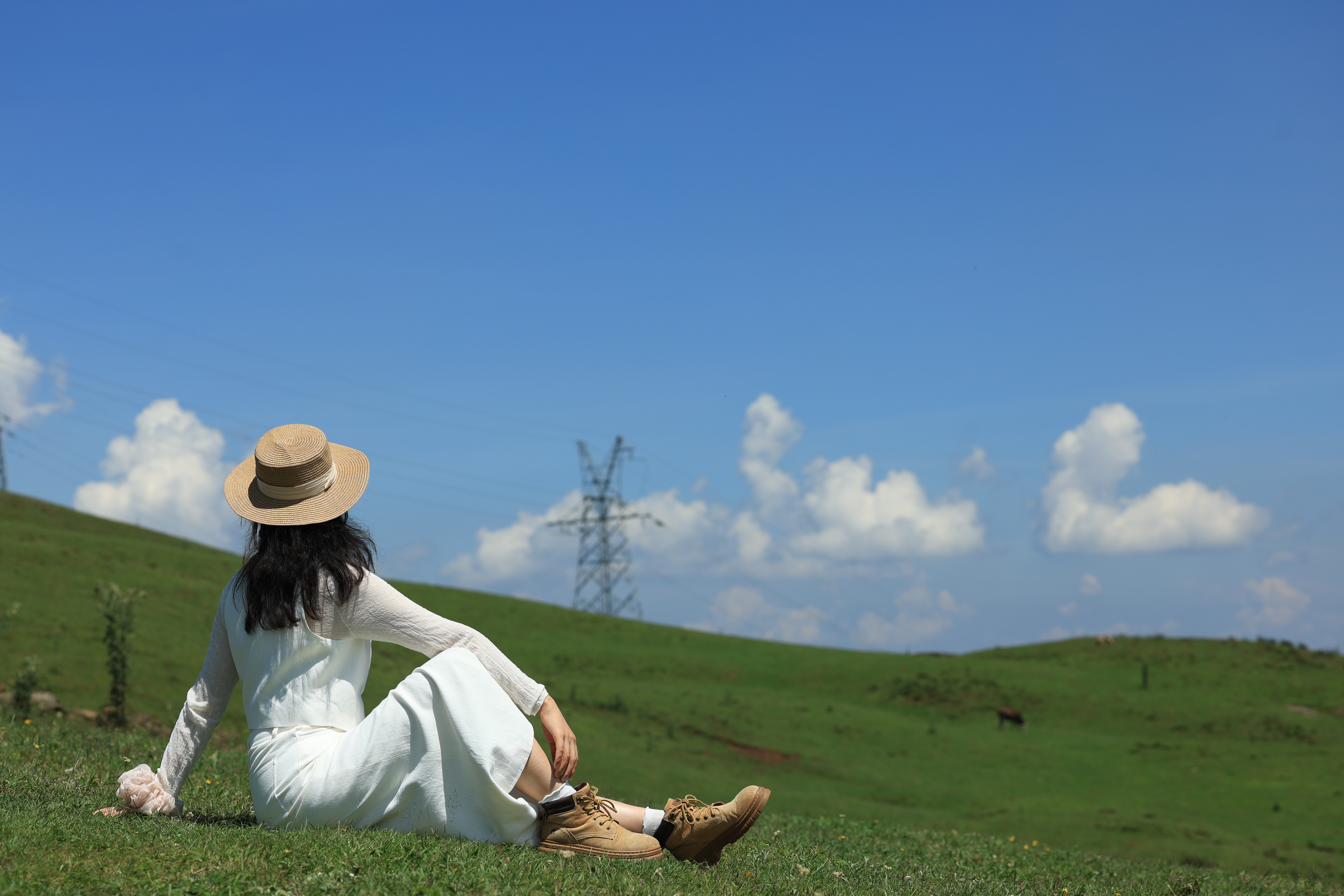 草浪铺展成起伏的乐章。左侧山峦叠作青玉屏风,木栈道如金线蜿蜒刺入云端;右侧坡谷忽现童话景致:巨型风车群转动银白臂膀,数十米高的叶片切割气流,将山风纺成电流输向人间。湖水在叶片间隙闪烁碎银,牧羊人的白马低头饮水时,鬃毛拂过水面,惊起一圈虹彩。游人裙裾绽成野花,笑声坠入草窠,孵出满地蹦跳的蚱蜢。