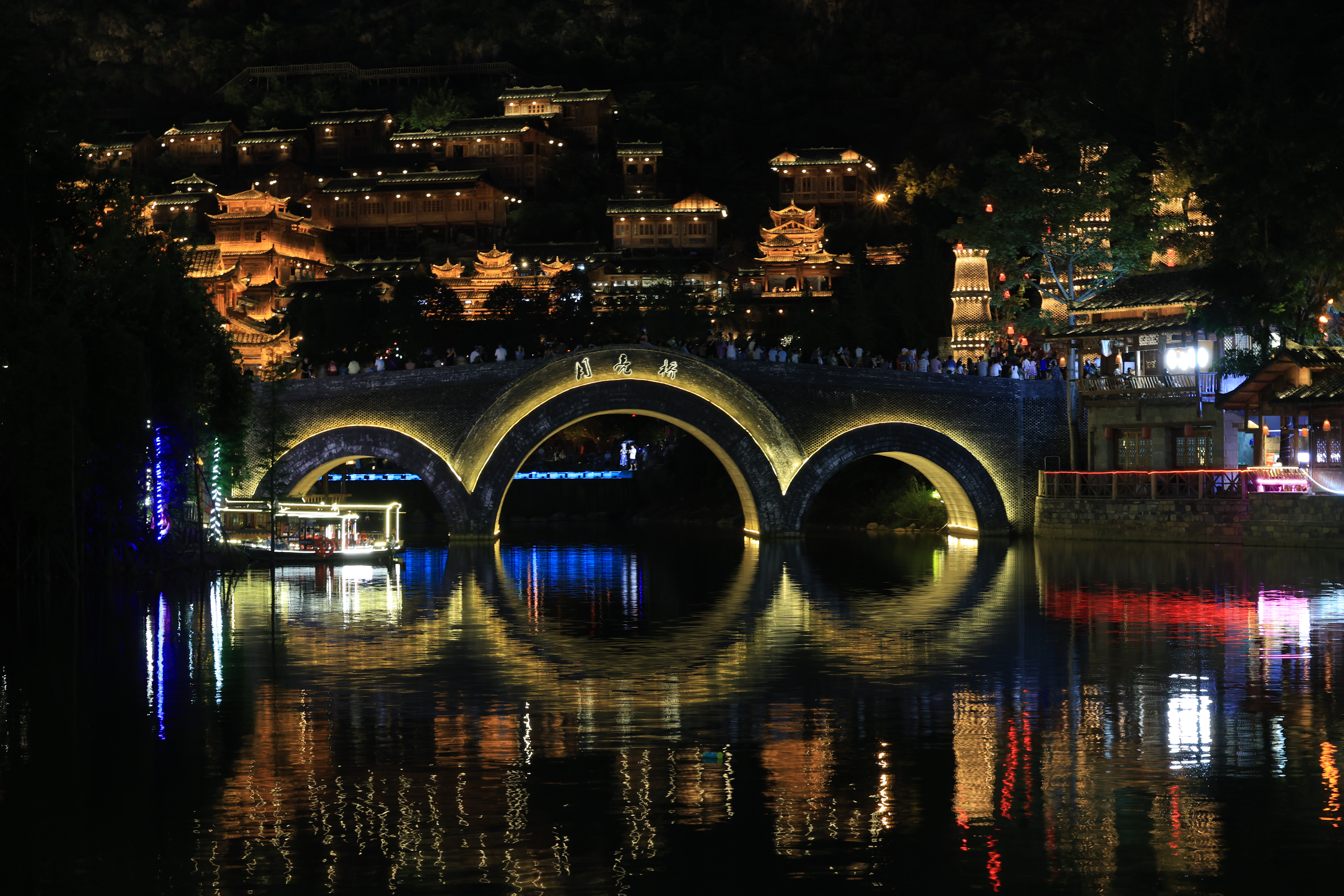 暮色浸透峰林布依时,吊脚楼点亮暖黄灯笼,木窗格漏出糍粑的甜香。忽闻铜锣震天,人群涌向河畔石桥——打铁花开始了!布依汉子赤膊执柳木勺,舀起1600℃铁水奋力扬向夜空。金红熔液遇风炸裂,万千流星撕开墨色天幕,有的如金菊绽放,有的似璎珞垂丝,更有铁屑坠入暗河,溅起荧蓝星火在水面跳跃。未待余烬散尽,篝火已燃作冲天赤柱。芦笙与象脚鼓声里,戴银项圈的姑娘拽住游人手腕:“来跳篝火舞呀!”众人围火腾挪踏歌,银饰铿锵伴着“阿喽喽”的呼喝,汗珠从飞扬的鬓角滴入泥土,竟生出野草破土般的酣畅。