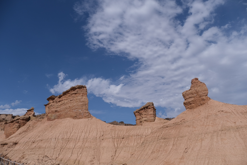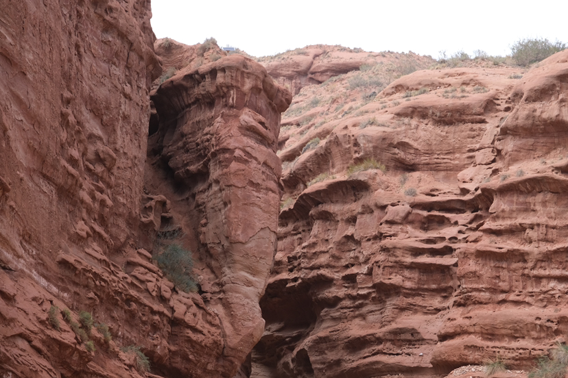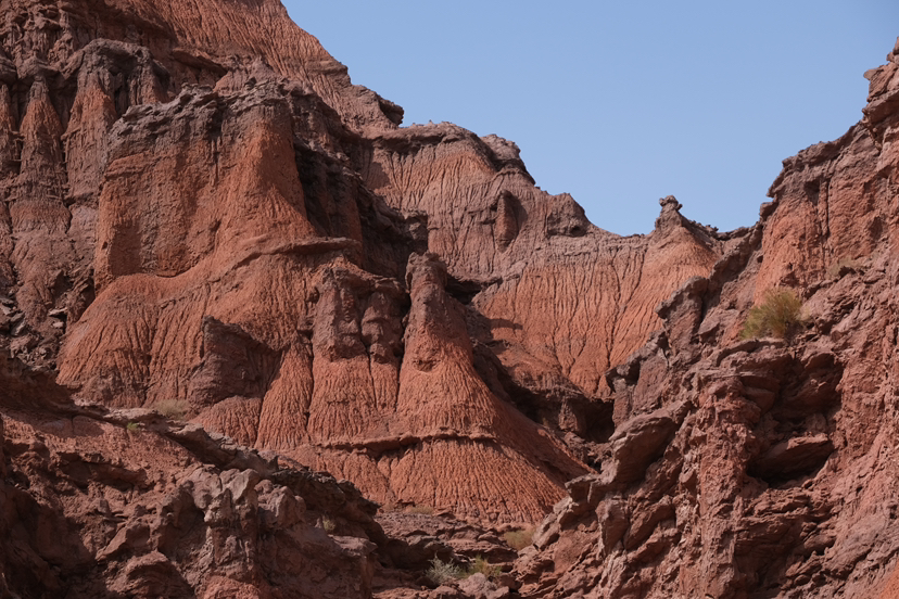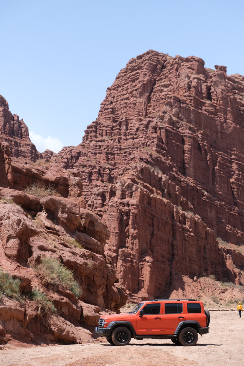 克孜尔红石林又名“魔鬼城”,这一特色景区位于新疆拜城县克孜尔乡和黑英山乡之间。景区特色是天然的自然丹霞地貌景观,以褐红色和姜黄色为主,由剥蚀、风蚀和流水作用形成,纵横交错的沟谷和梁脊、台地、孤丘,形成了如人、龟、骆驼等动物形状的奇特景致。