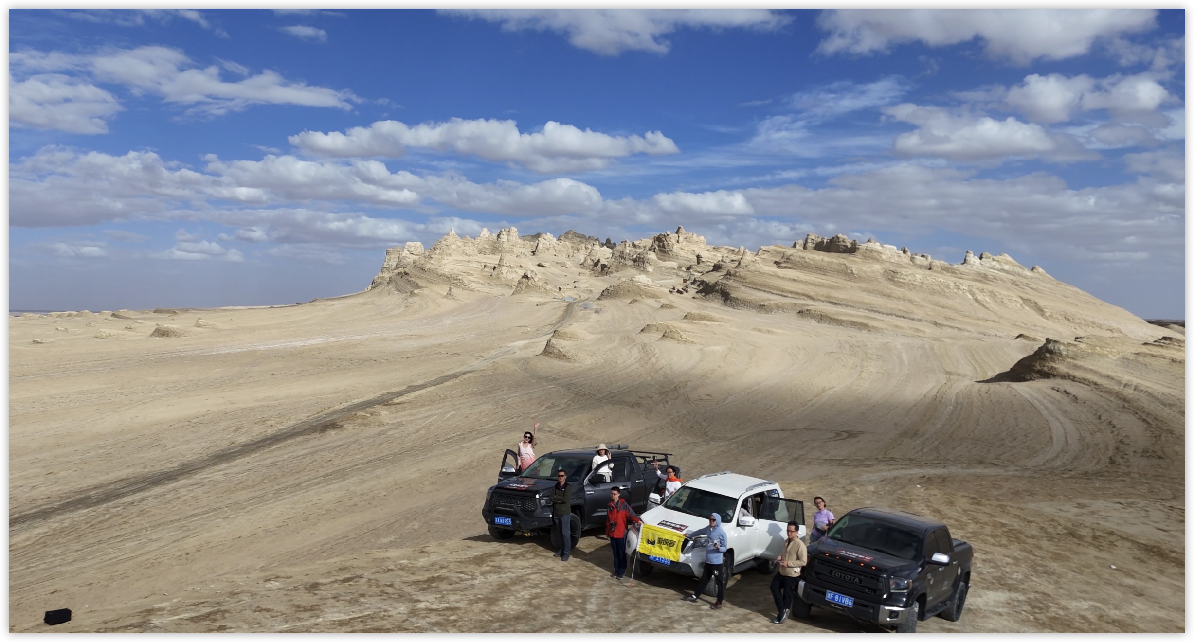 尖塔状的雅丹刺破苍穹,矮丘则匍匐如卧虎,风在岩面刻出的螺旋纹路,像上帝随手画下的潦草笔触。正午时分,阴影缩短成墨色斑点,整个区域化作明暗交错的棋盘;日暮时风蚀壁龛被染成金红,雅丹群成了燃烧的城堡。