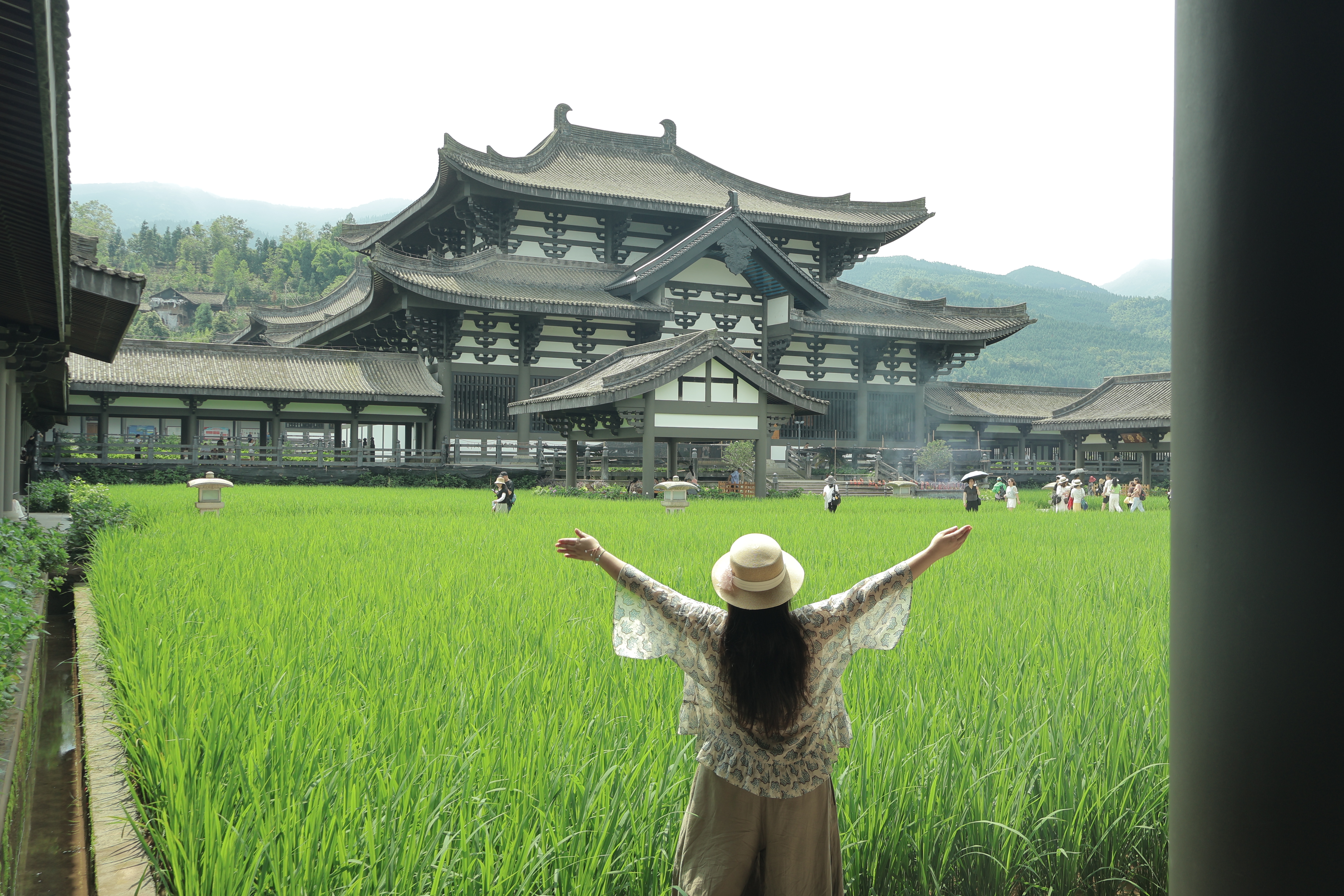 🏠寺院各殿宇之间种的有水田,用于劳