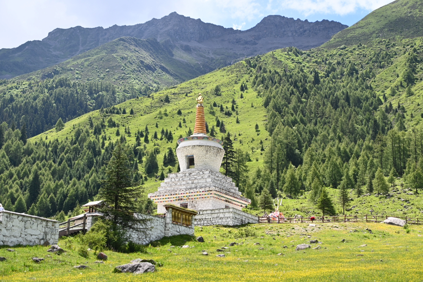 晨光穿透松林,珍珠海如镜面倒映着仙乃日雪峰的巍峨身影。栈道沿冲古寺蜿蜒,玛尼堆与转经筒在阳光下闪烁。短草甸上旱獭探头,溪流叮咚穿过泛金的苔原。往返3公里的轻徒步,将雪山、古寺、秋色尽收眼底,是时间有限者的诗意选择。