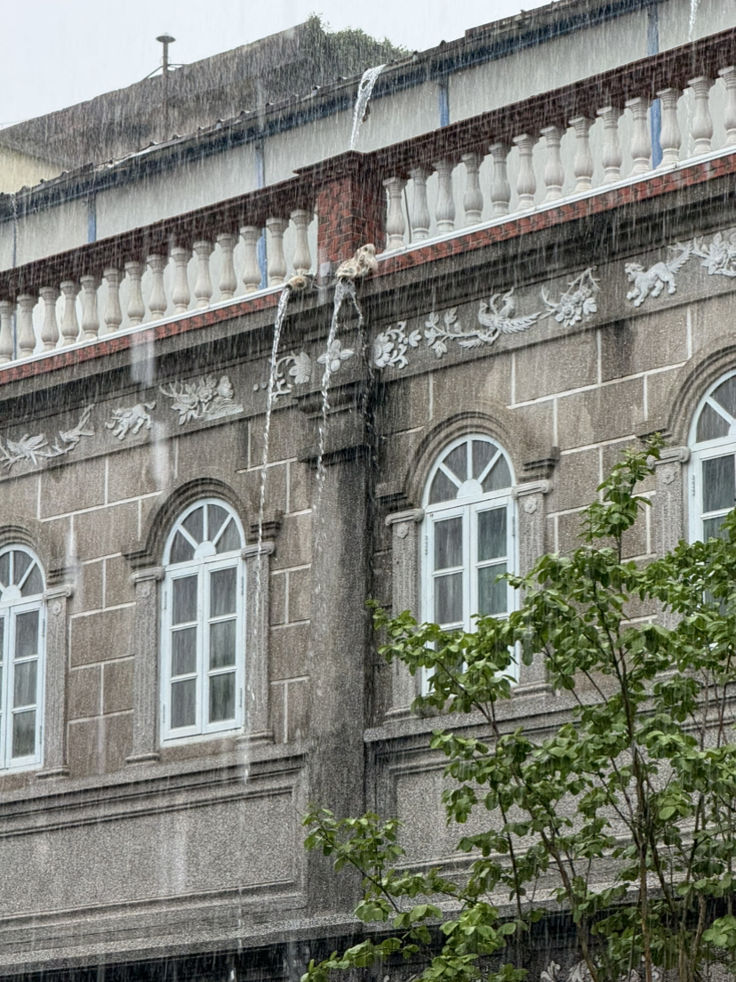 第一次看开元寺下那么大的雨,也看到了滴水兽吐水~还看到了行道树荔枝沉甸甸挂满枝头!