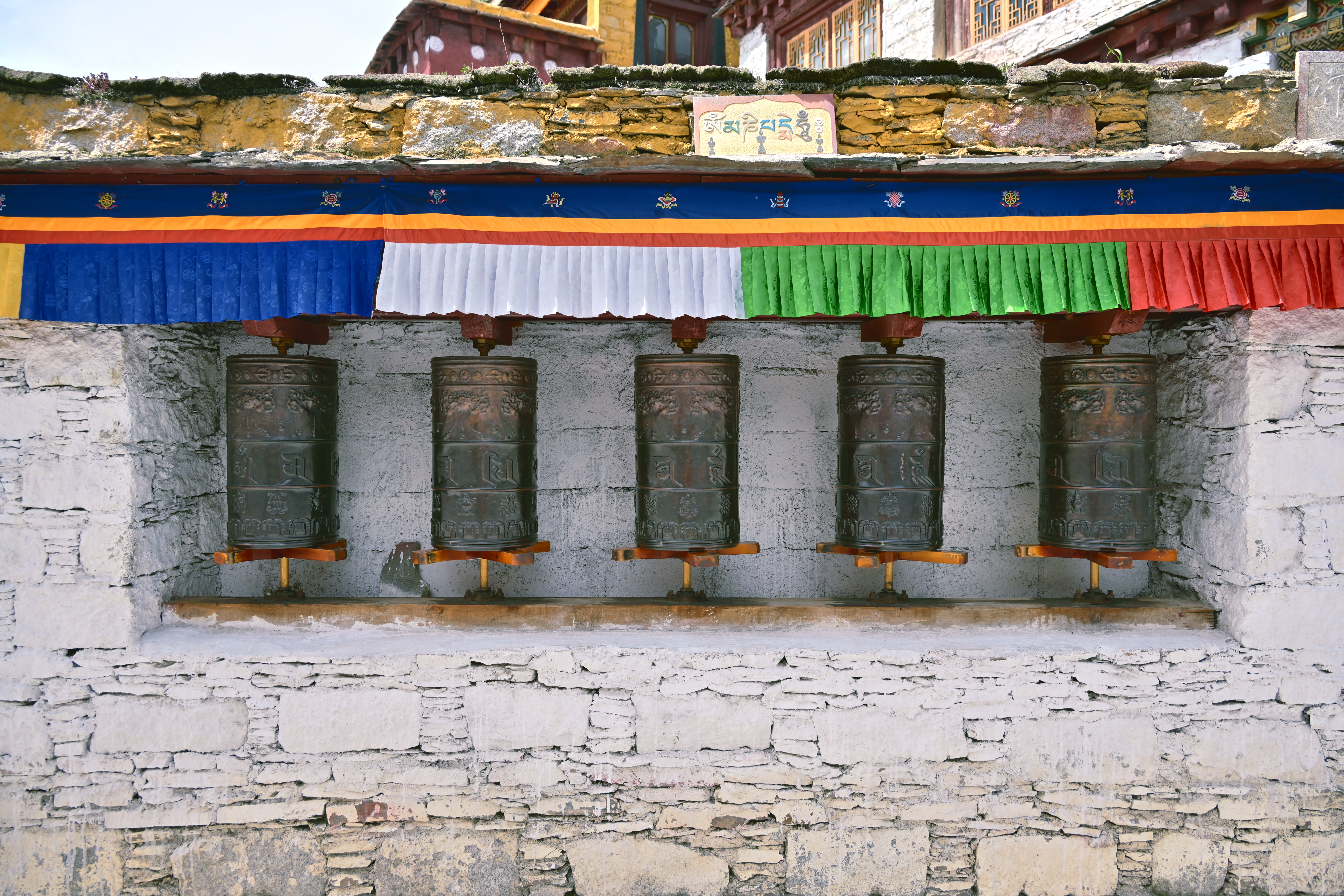 寺庙旁白有一个很大的经幡塔,也是一个很不错的拍照点。经幡塔一侧有个洞可以钻进去。爬上塔中间的楼梯拍照很出片。