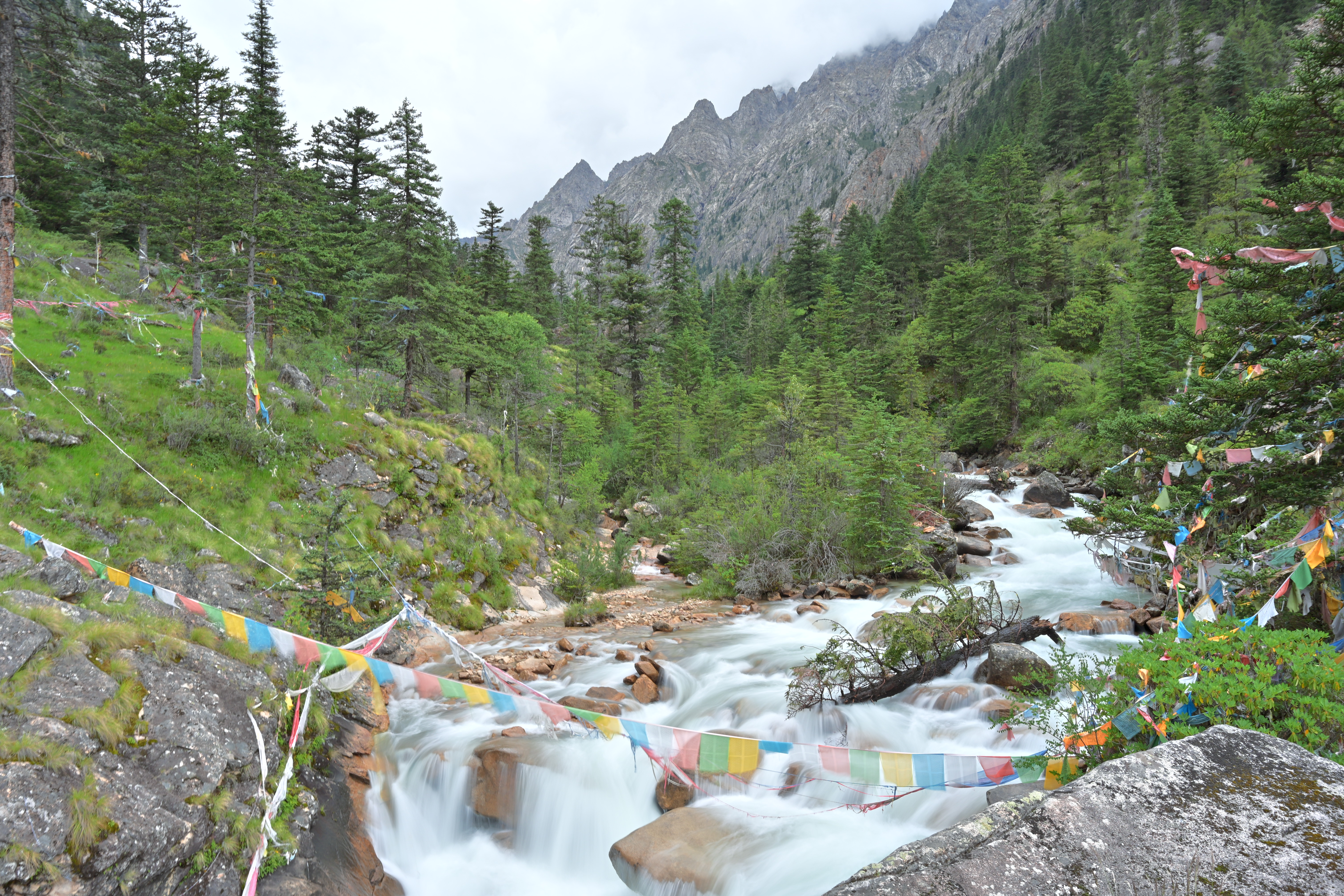 这里位于格聂南坡,按理说抬头便是格聂雪山。但今天天气实在是不理想,格聂雪山被厚厚的云雾遮住看不了一点。