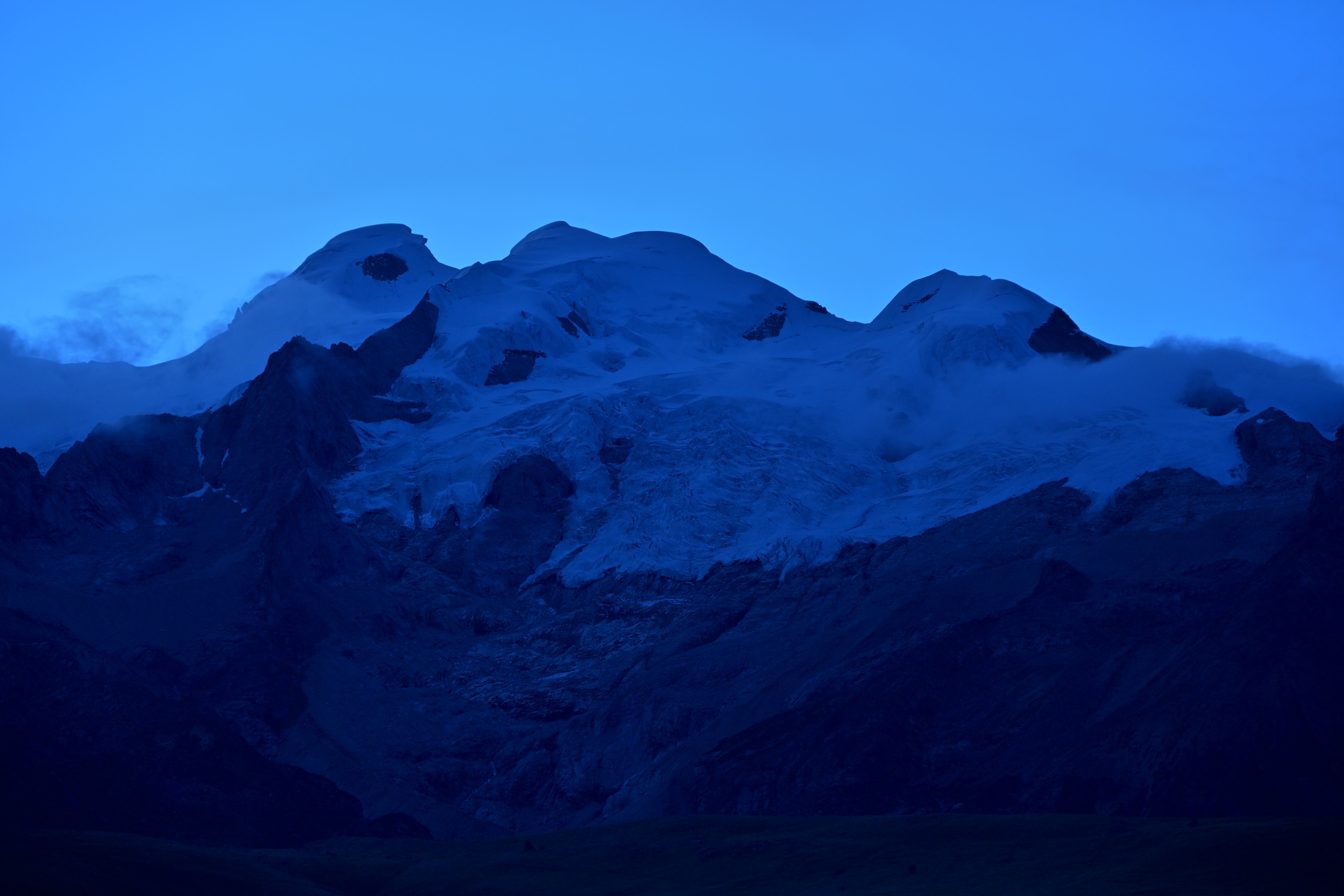 饭后决定沿着村子后面的山坡往上爬一爬,沿着小路走20分钟,大约爬升200m便能拥有很好的视角,这边才是无遮挡拍摄格聂雪山的机位。虽然没有等到夕阳下的日照金山,但格聂的蓝调时刻好在还是看到了。傍晚的山上有些冷,需要多带保暖衣物。
