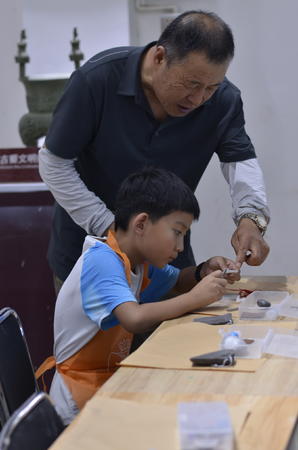 次日清晨,阳光穿透薄雾,三星堆博物馆的青铜神树在晨光中若隐若现。孩子们仰着小脸,目光被那些造型奇诡的青铜器牢牢吸引,小小的脑袋里似乎装满了对古蜀文明的无限遐想。展柜里的纵目面具、青铜大立人像静静矗立,仿佛在诉说着千年前的秘密,孩子们的脚步放得极轻,生怕惊扰了这份跨越时空的对话。午后的青铜工坊里,陶土在小手中渐渐有了形状,有的模仿着博物馆里的文物,有的则捏出天马行空的创意。考古体验区的沙池旁,小刷子在稚嫩的手中挥动,当“文物”的一角显露时,雀跃的身影与扬起的沙土构成一幅生动的画面。夜幕降临时,队伍抵达都江堰市区,窗外的灯火如同散落的星辰,孩子们抚摸着自己亲手制作的“青铜器”,在梦里延续着与古蜀的邂逅。