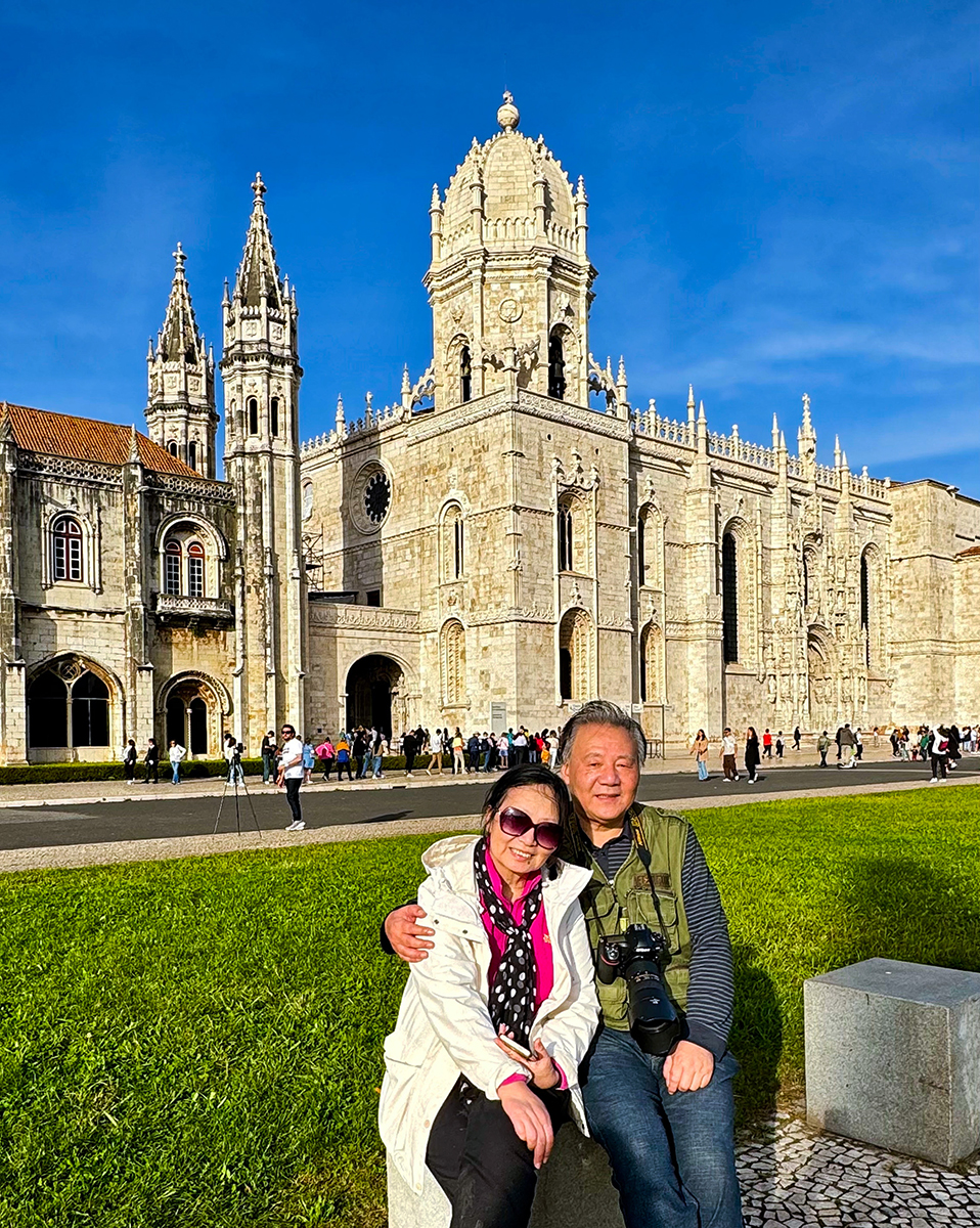 后面是圣热罗尼姆斯修道院和教堂,我们不能入内拍摄。这是一座宏伟的歌德式建筑,是葡萄牙最大的教堂。请朋友帮我们远处拍拍吧。