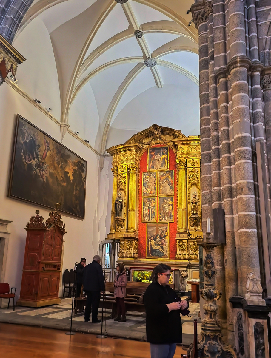 教堂大厅中心的圆形屋顶建于公元十三世纪末,这种建筑样式在葡萄牙教堂中十分罕见。入口处的罗马-哥特式风格雕刻的基督十二门徒栩栩如生,邀请您走进教堂。仿佛在邀请游客走进这座宏伟的建筑。教堂内的大神龛由建筑师路德维希设计,他曾也设计建造了马福拉修道院。