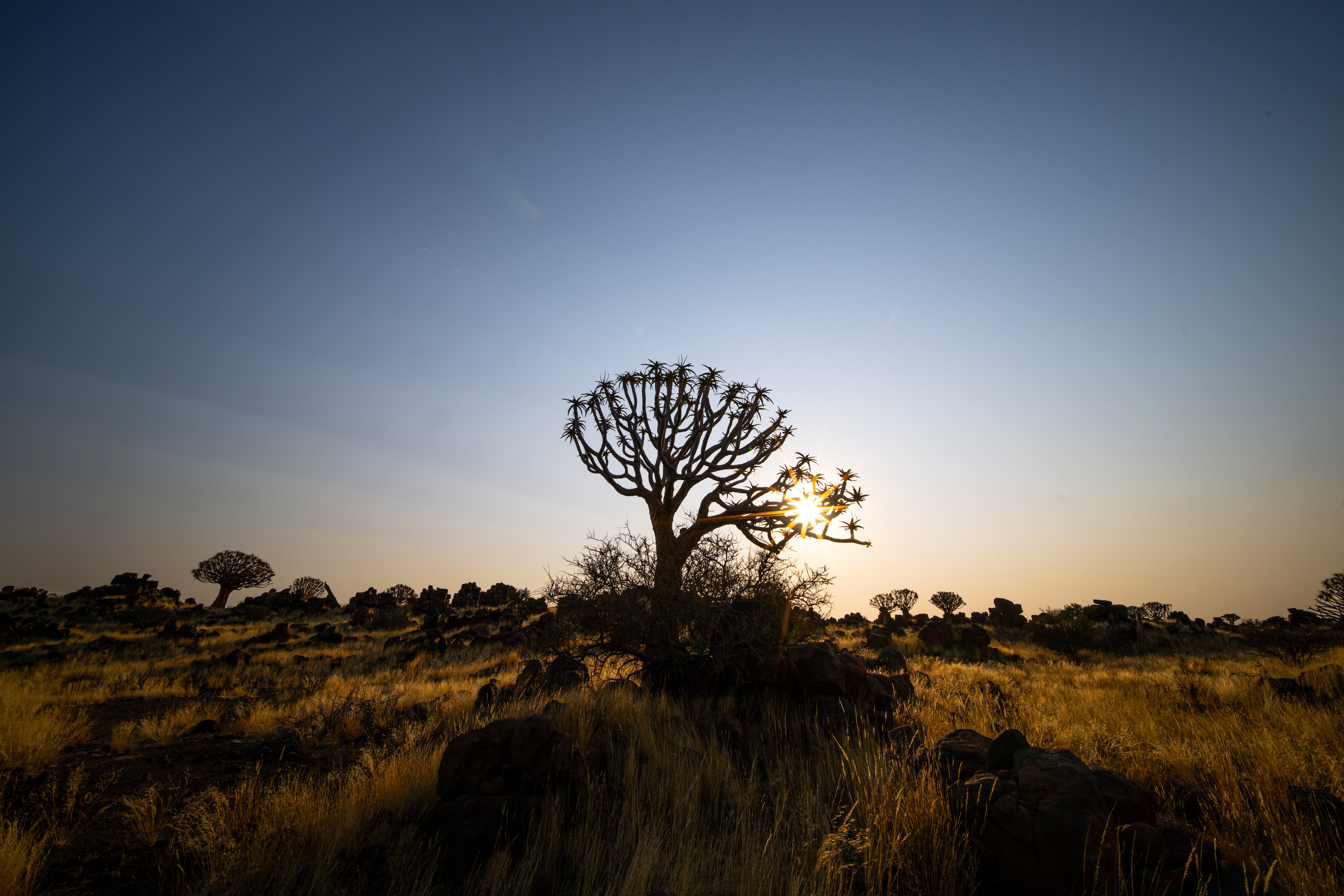 在纳米布沙漠开阔的景观中,箭袋树别具特色。特别是在夜晚,箭袋树与星空相互映衬,构成了十分壮观的画面,吸引了很多摄影爱好者前往拍摄