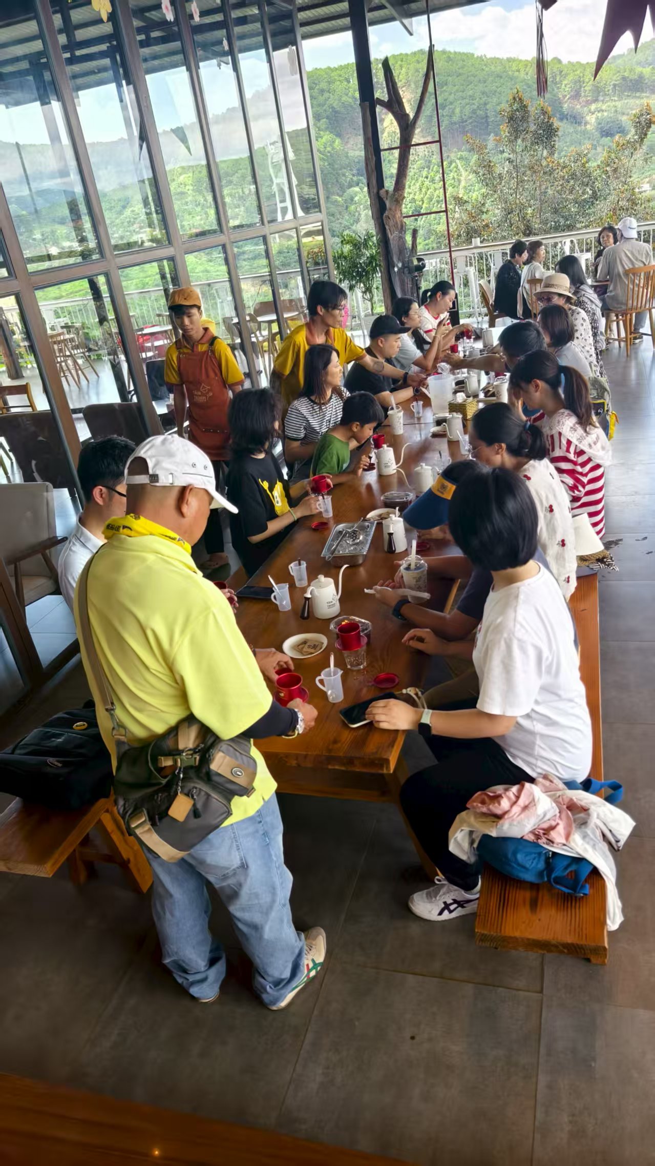 从美奈坐大巴往大叻去,车窗外的风景渐渐从海滩变成起伏的青山,气温也跟着降了下来。大叻是座建在海拔 1500 米山上的小城,法国殖民时期曾是避暑胜地,如今还留着许多彩色的法式别墅。最有意思的是 “疯狂屋”,建筑师把房子设计成了童话里的森林城堡,扭曲的树干状立柱、悬空的玻璃栈道、藏在 “树洞” 里的房间,走在里面像闯进了奇幻世界,爬到最高处的露台,能看见整座城的红瓦屋顶被绿树环绕,云雾在山间慢慢游走,连呼吸都变得清爽。午后租一辆自行车沿春香湖骑行,湖边的樱花树虽未开花,嫩绿的枝叶却透着生机,偶尔遇到卖榴莲的小贩,竹篮里的榴莲黄得发亮,咬一口,甜美软糯,这大概就是山城独有的温柔。