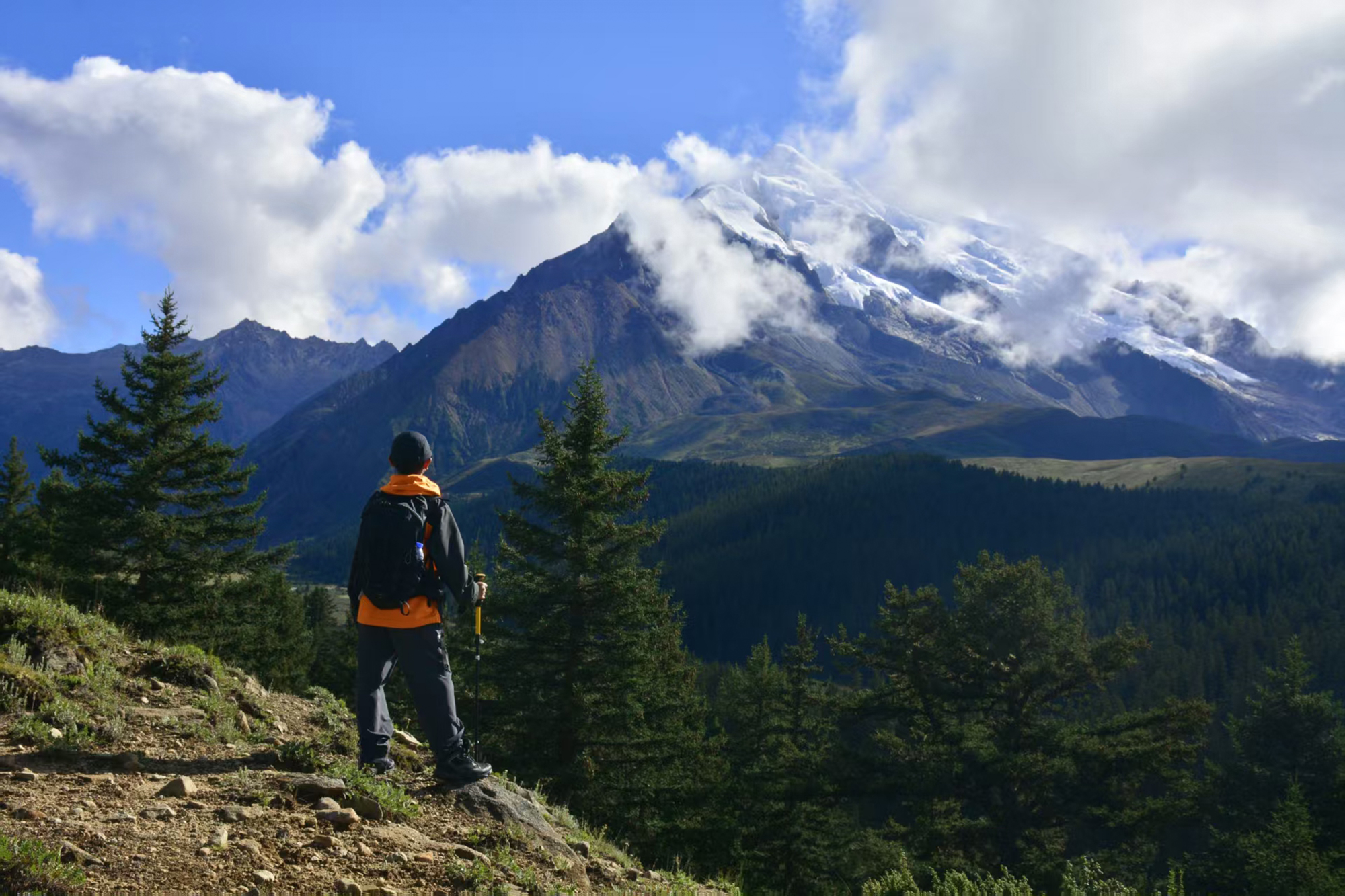 下山前往则巴村的路,走得格外轻松。我们在下山途中竟意外看见了格聂雪山全景,只见格聂雪山巍峨挺立、寒气逼人,太壮观了。