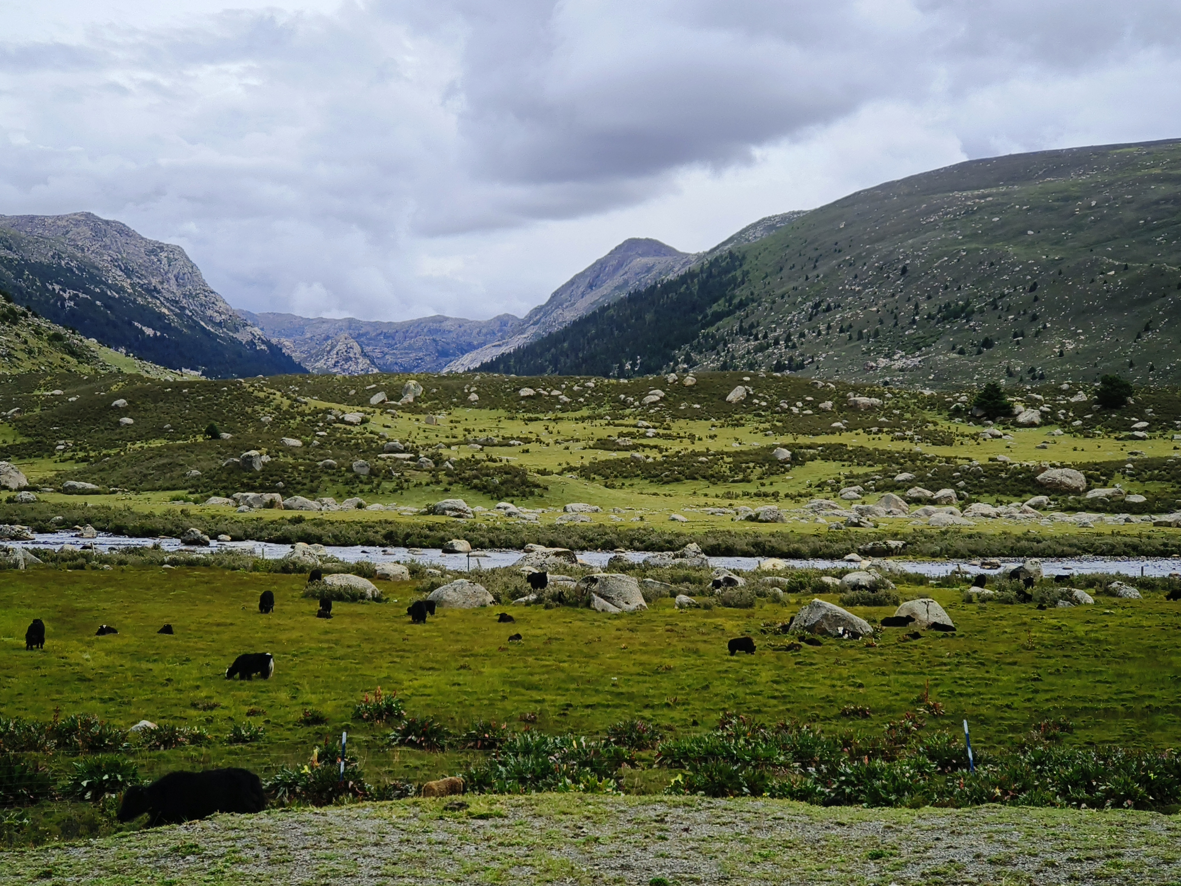 公路旁的峡谷间,两侧高峰坡地的草原上铺满了碎石。原本该是柔缓的草原透着蓬勃生气,碎石又添了几分粗粝的苍凉,两种气质揉在一起,反倒成就了一番格外壮阔的景致,目光扫过处,尽是藏地特有的苍茫与鲜活。