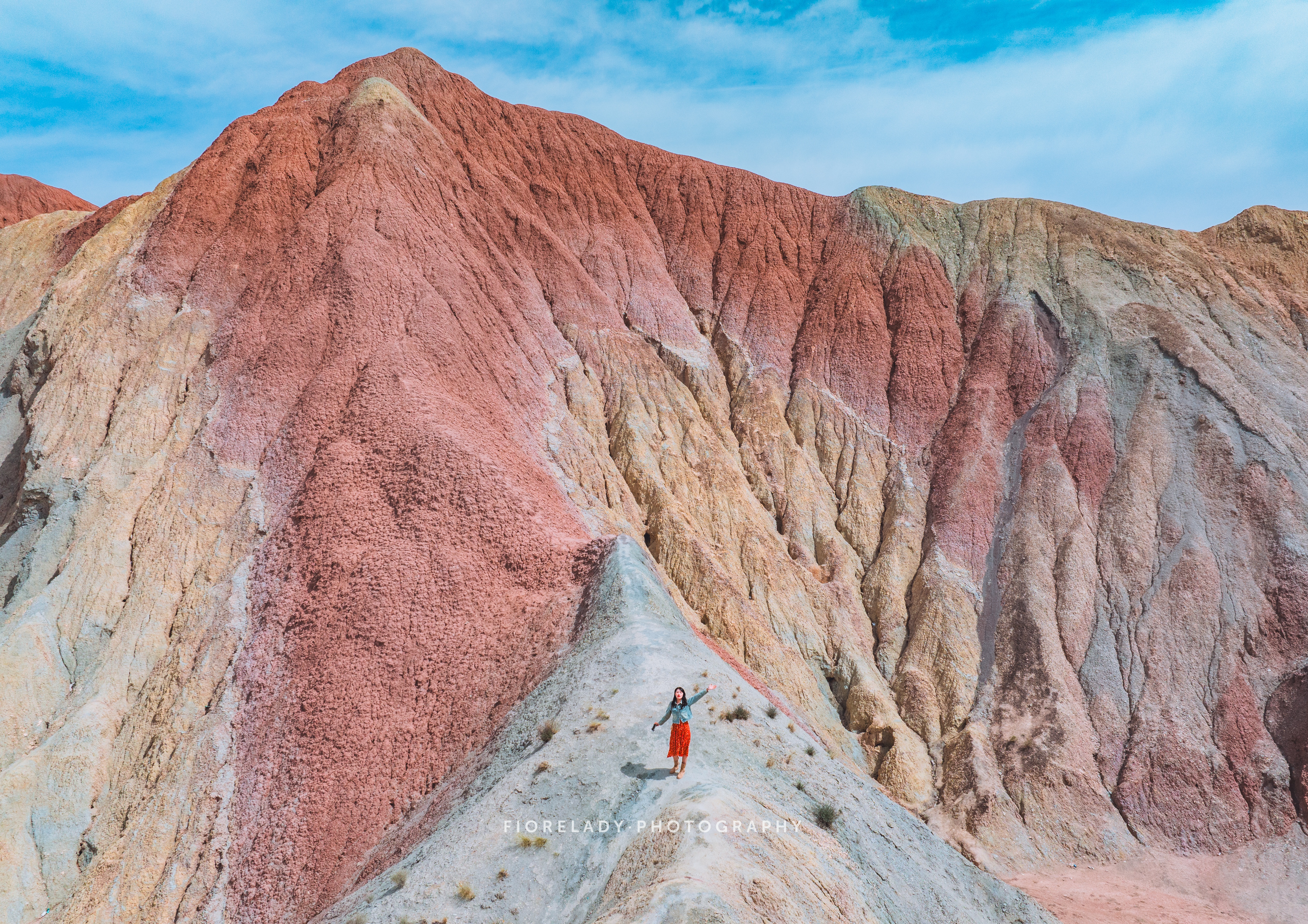 连绵起伏的苦水丹霞毫无遮挡地撞进视野!没有栏杆束缚,你可以真正走进这片“彩虹山”。赭红、橙黄、灰白、黛青…