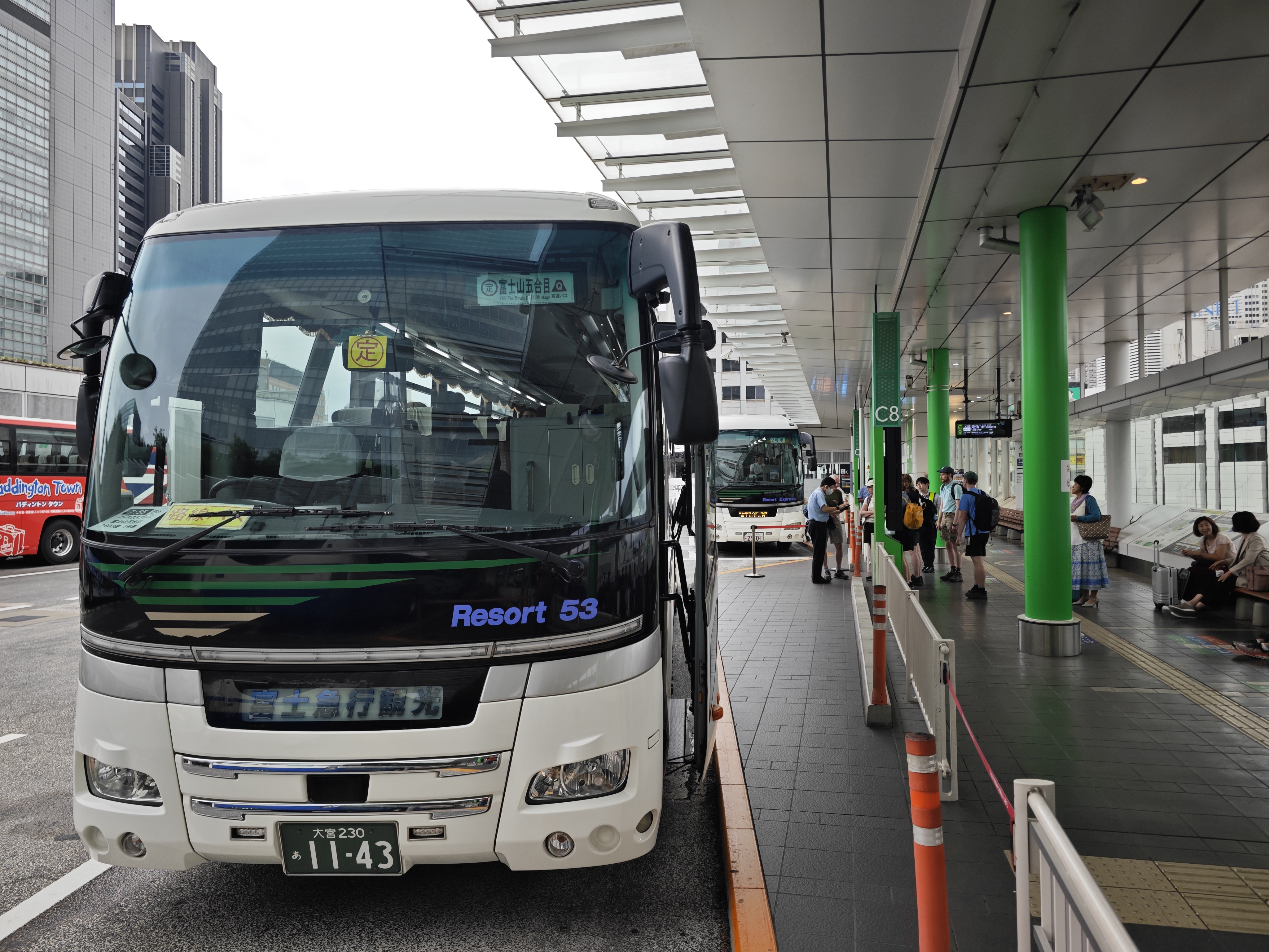 我是9月3号晚抵东京的。住所的附近有一家大超市,我进去买了两个菠萝包和两罐红牛。9月4日一早,东京阴到多云,我坐京王线来到新宿站。这个巨大火车站东西南北有多个出口,巴士站在新南改札(出口)的马路对面4F。如方向感差,建议至少留足20分钟(从下火车到巴士站台)。
