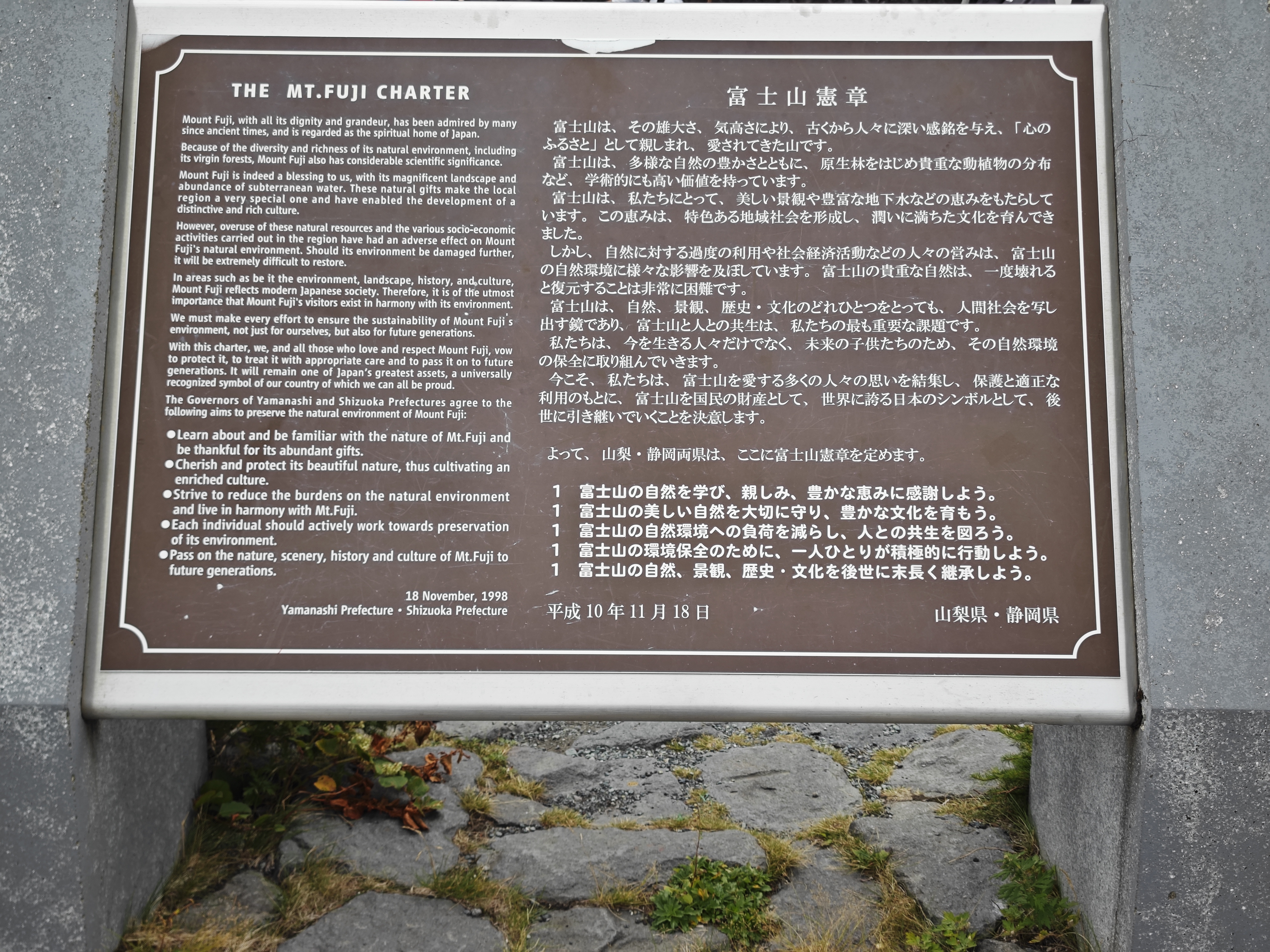 10点,我来到一三岔路口,右转就是吉田道的上山小径。这段路参天大树多了起来,一点不像是在活火山的山脚。20分钟后,我来到Y021路标,前面就是吉田道的六合目安全指导中心。那里工作人员按语种给我发了登山安全须知。