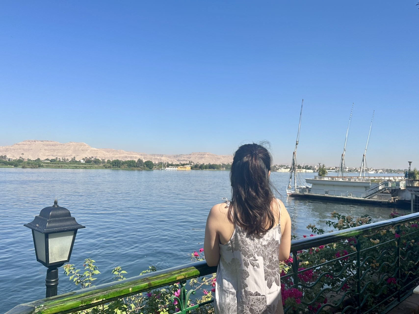 卢克索是埃及原来的首都,一早去坐热气球,这个很吃天气,所以早点安排,如果天气不好还能改到第二天,卢克索的早晨真的好美,看到了尼罗河两岸的景色。回到酒店补觉吃早饭,酒店的早饭真的赞爆,坐在尼罗河边喝咖啡,转头可以看到河里的帆船,对岸的帝王谷,找到了一点古早欧洲电影的感觉。卢克索和开罗的河景完全不一样,开罗的尼罗河就像任何一个发达国家的主流河道,宽宽的河道两边是现代化的建筑。而卢克索的尼罗河非常的静谧,河水潺潺流过,河上的帆船安静航行,更像是漂泊。河对面的黄土山谷,像是触手可及的历史。而且餐厅很好吃,光法式面包就有十几种,是发呆一上午的好地方。吃好早饭出门去逛街,先去酒店对面的礼品店挑了莎草纸画,东西超级多,价格没有市场便宜,但是品相好一些,结账时候老板给我们大赞中国的伟大,中国对埃及的帮助,对我们国家的感谢,一点点骄傲。然后步行到了居民区的超市买零食,刚好是学校放学的时间,一路上碰到很多男孩女孩,好奇的看着我们这几个陌生面孔,有几个很大方的和我们打招呼聊天,非常可爱友善。可能是因为不在景区的关系,一点也没有碰到要钱的情况。超市的售货员也很友好,需要什么都很热情的帮忙。