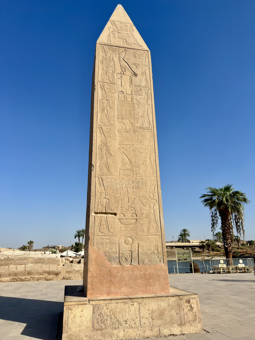 下午去了重头戏卡纳克神庙,是埃及最大的神庙群,因为每个上位的法老都要来这里建立一个神庙,慢慢形成了一个巨大的神庙群。原来这个神庙是在尼罗河旁,法老都是坐船过来,但是随着阿斯旺水坝的建成,尼罗河变窄了,原来神庙门口的码头就变成了陆地。入口两侧是很长的两排羊头像,古埃及有自己的三位一体,太阳神和他的老婆还有孩子,每年庆典都会用船游行。这里也有老百姓祭祀用的露天趟,再往里就是法老才能进去的。神庙里的水城池是法老祭拜神灵前,净身用的。神庙原本是有顶的,大多风化了,原来是色彩斑斓的,但因为原来大多用的自然颜料很容易脱落,现在只有某处还能看到美丽的色彩。也看到了尼罗河惨案里,著名的大石头还在那里稳稳的安立着,就像这里所有的石柱。也知道了拉美西斯二世,很喜欢把别人神庙上的名字涂了改成自己的。看到了我最喜欢的女法老哈特立的方尖碑,又一次被古埃及人的智慧惊叹。