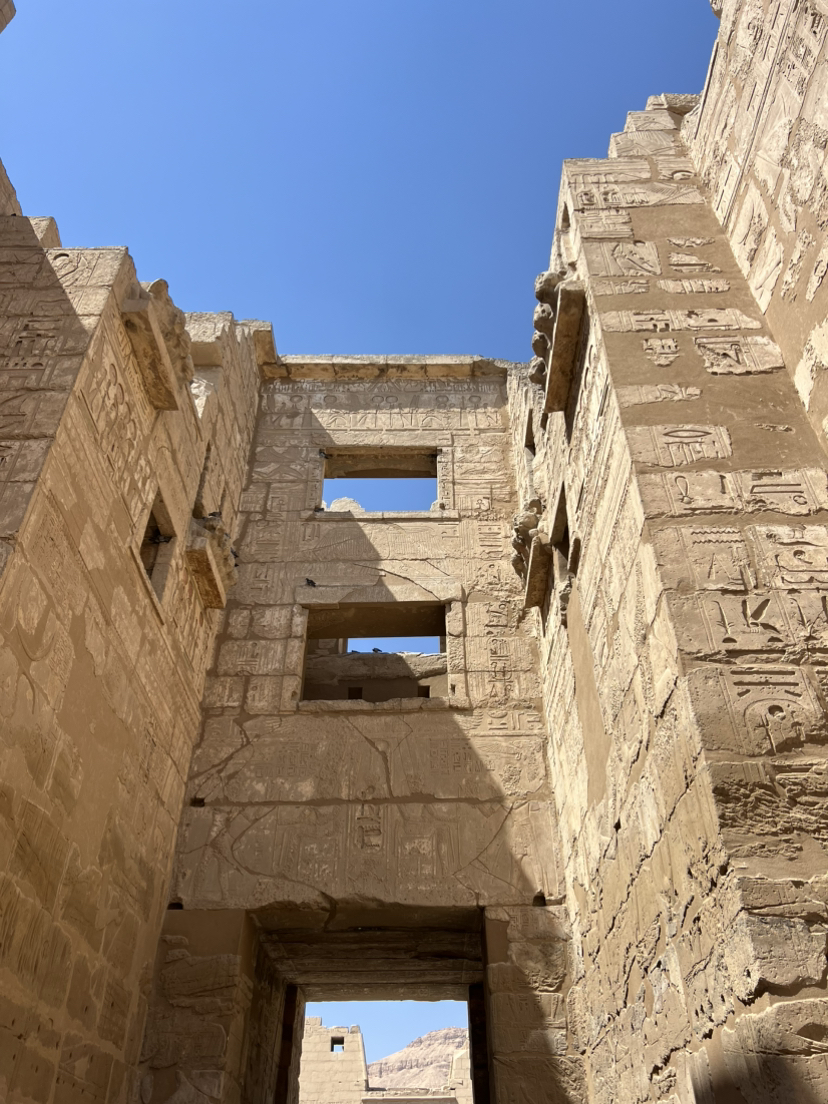 其实到哈布城的时候已经有点审美疲劳了,但是其实还是很不一样的,因为是埋葬的神庙,这里的风格更靠近叙利亚,也因为是死亡神庙,所以在尼罗河西边。拉美西斯三世是权力最大的国王,墙壁上雕刻着他打胜仗的图画,有很多敌人被砍掉手的图案,放在一起,可以计算杀死的敌人数量。因为地中海等地的移民,导致他之后国王的权利被分散。里面有两百多个节日,和节日神,还有给他们送的礼物和仪式,很特别。布局和其他神庙一致,两个塔门,大柱子堂,小柱子堂等。