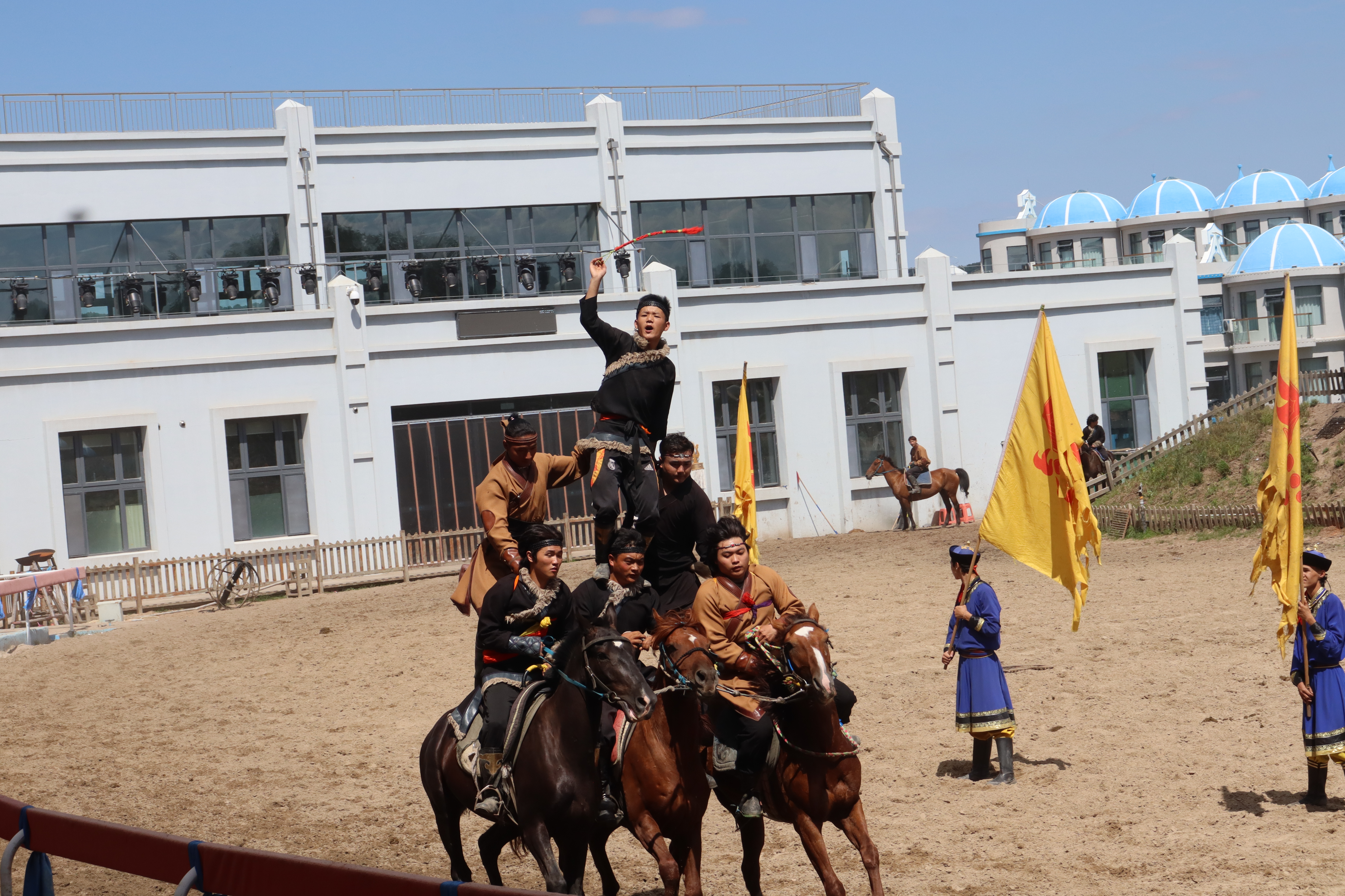 骑马、射箭、搏克是蒙古草原民族三艺,一场“英雄”演绎,让我们见识到了草原民族的英勇,曾经只有在电视里看到的各种骑马竞技,在公主湖马术表演中展现得淋漓尽致,观众都拍手叫绝