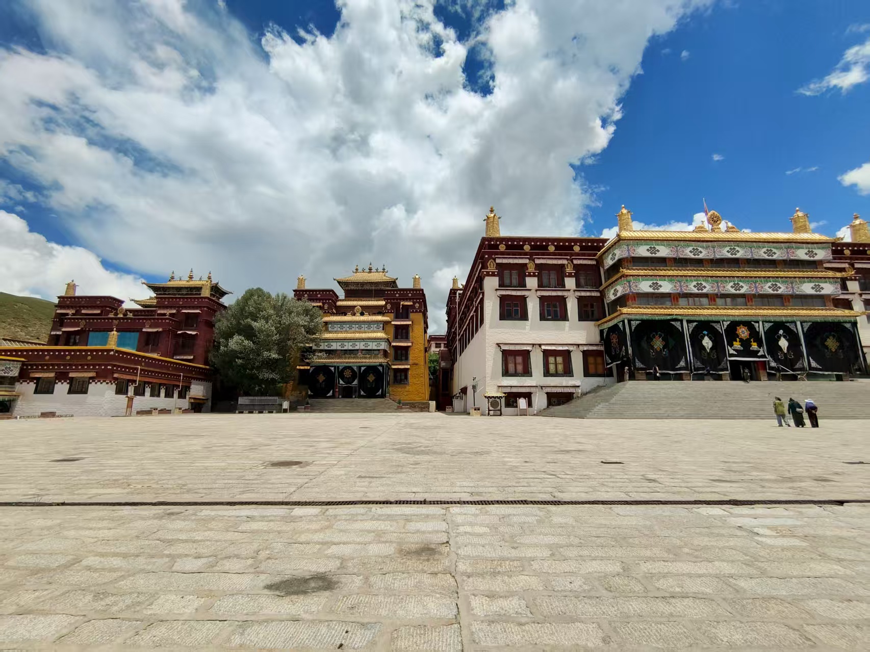 来到长青春科尔寺门前,便能看到许多朝圣者不远万里前来朝拜。进入寺院,只见三座大殿赫然立于眼前,它们分别是大经堂、宗咯巴大殿、以及释迦牟尼殿。我们在讲解员的带领下,依次参观了三座佛殿,也算是完成了一次意义非凡的朝圣了。